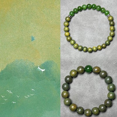 Golden and Jade Fate, Five Elements - Wood Energy Bracelet (Golden Nanmu+Hetian Biyu)