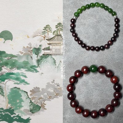 Green Wood Lingbi, Five Elements - Wood Energy Bracelet (Green Sandalwood + Hotan Jade)