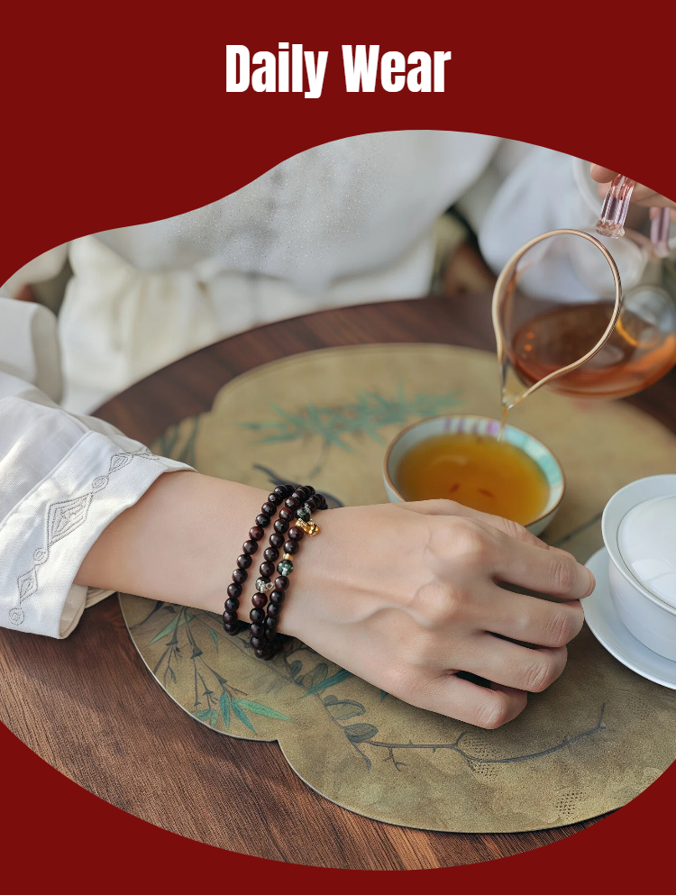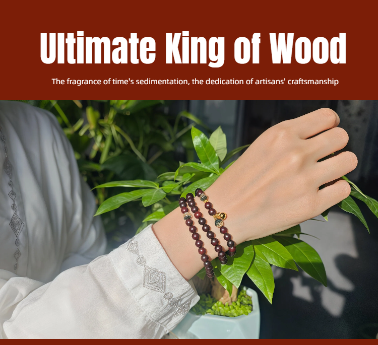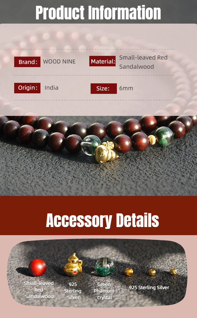 Slim Wood Healing Bracelet: 6mm Red Sandalwood Green Phantom Crystal- Yoga Stackable
