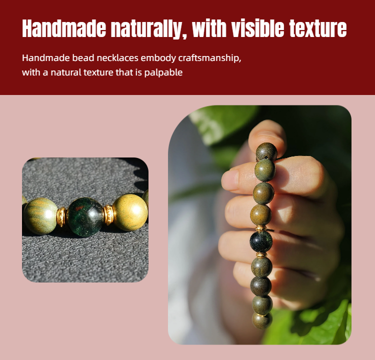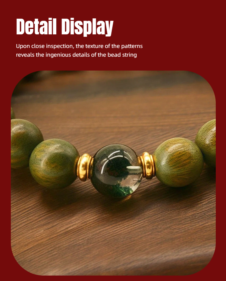 Wood Healing Energy Bracelet: 10mm Green Sandalwood Green Phantom crystal for Financial Fortune