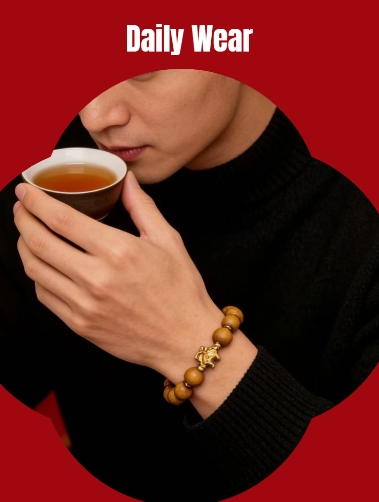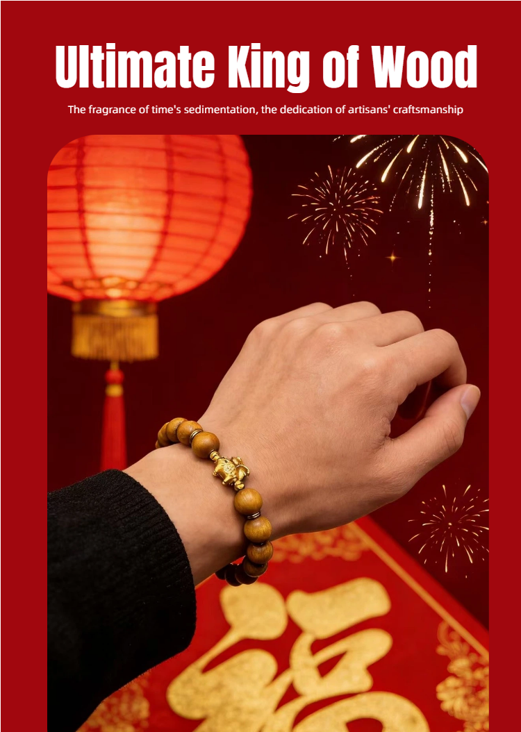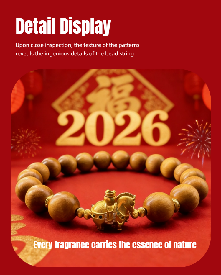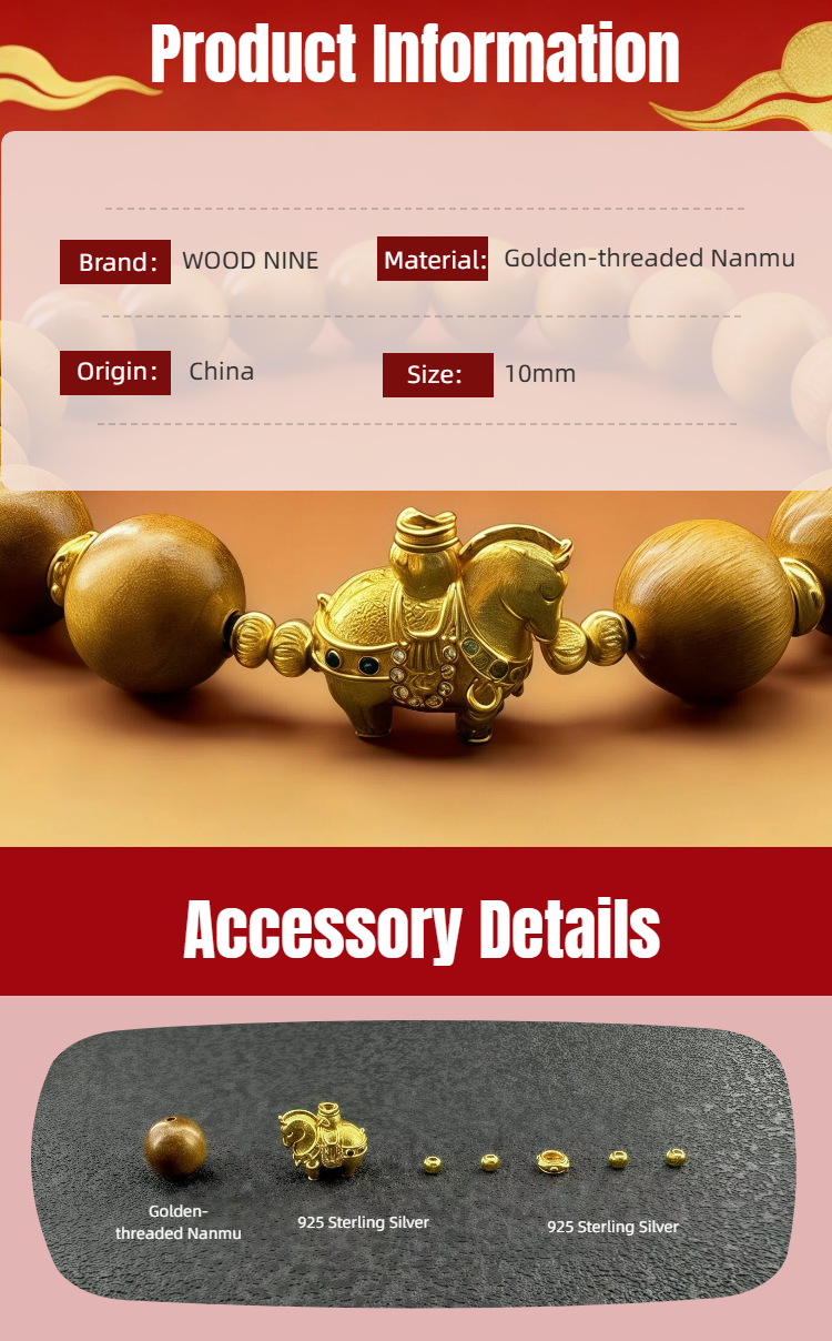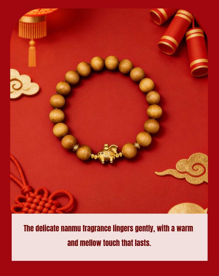 Mujiu Golden Phoebe Fortune Bracelet for the Year of the Horse - Gallop into Spring & Gather Blessings. Zodiac Birth Year Protection | New Year Luck-Bringing Gift | Ideal for Elders & Friends