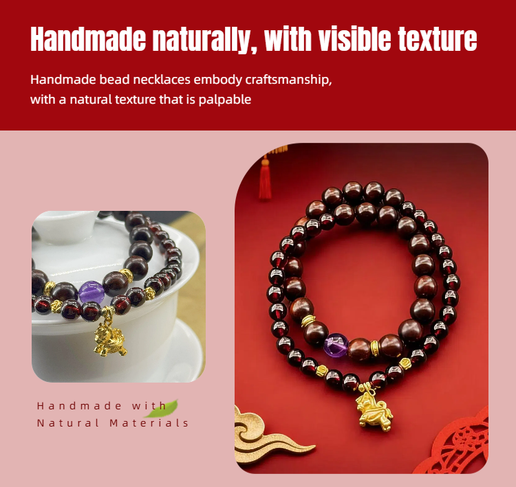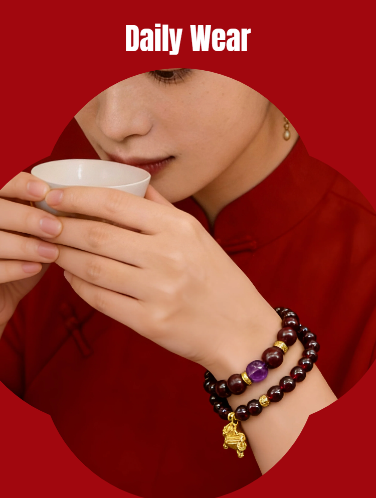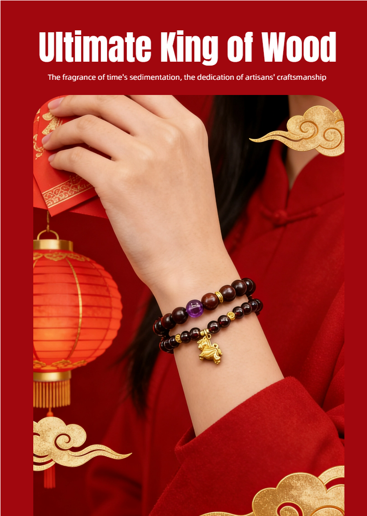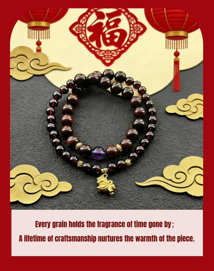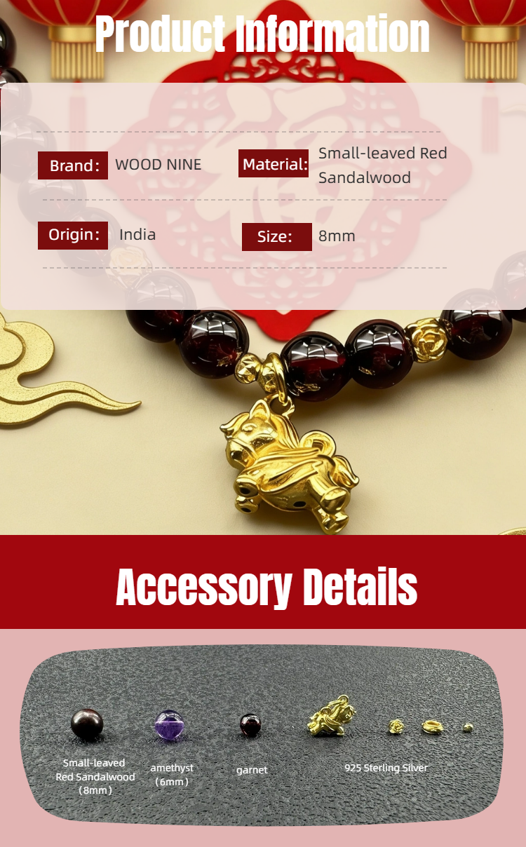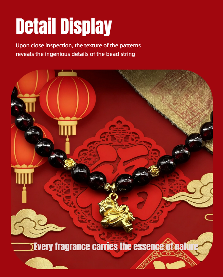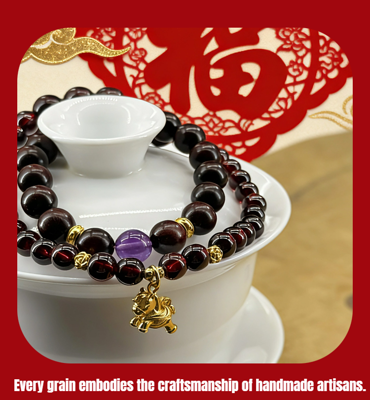 Mujiu Red Sandalwood Zodiac Bracelet - Auspicious Steed Blessings for the Year of the Horse. Chinese Style New Year Gift | Luck & Fortune Attracting | Elegant Statement Accessory