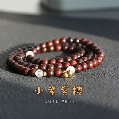 Dainty Gold Women's Bracelet: 6mm Red Sandalwood Super Seven White Crystal - Feng Shui Gift