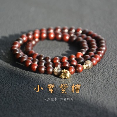 Tiny Water Healing Bracelet: 6mm Red Sandalwood Super Seven Black Crystal - Women's Healing