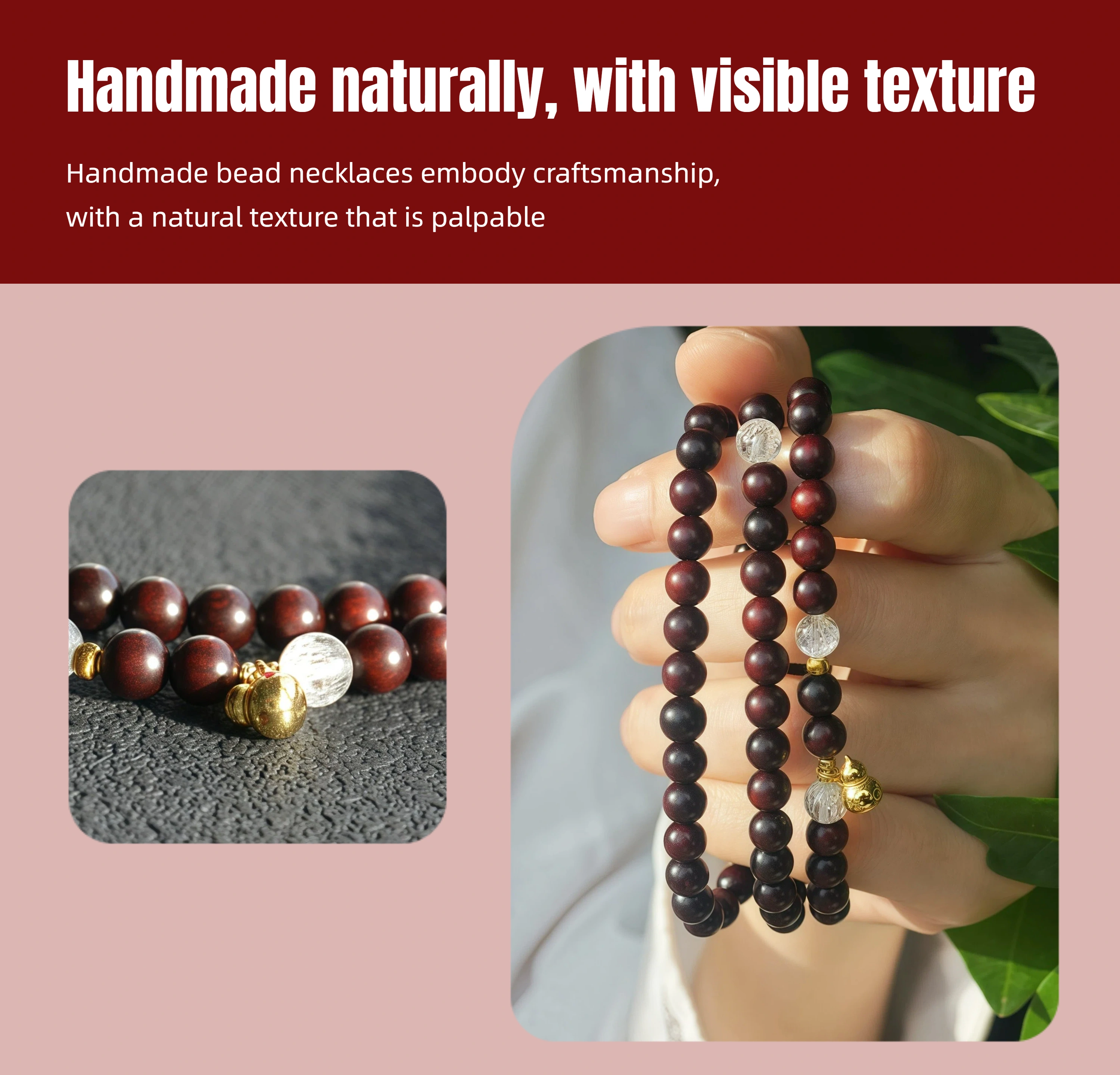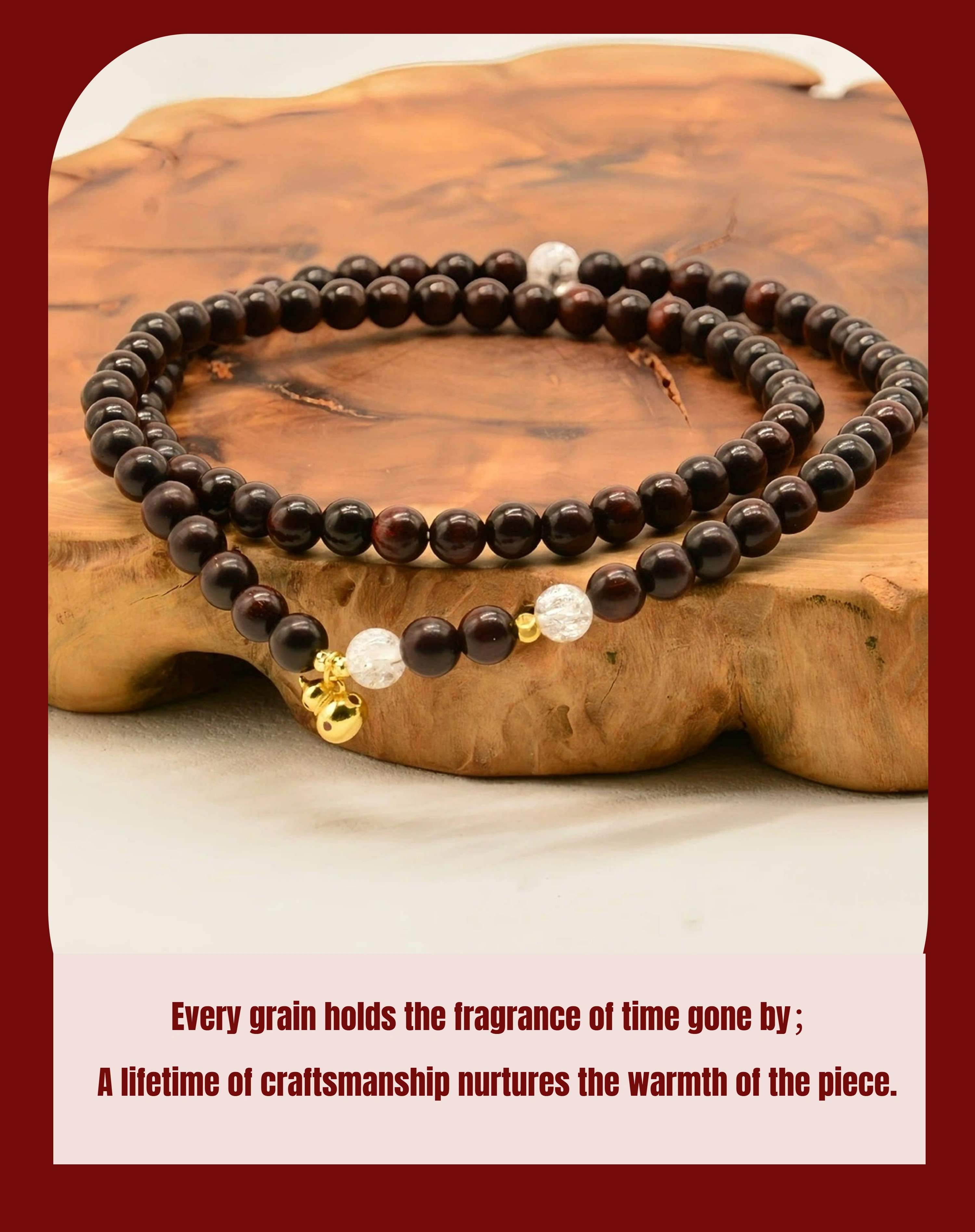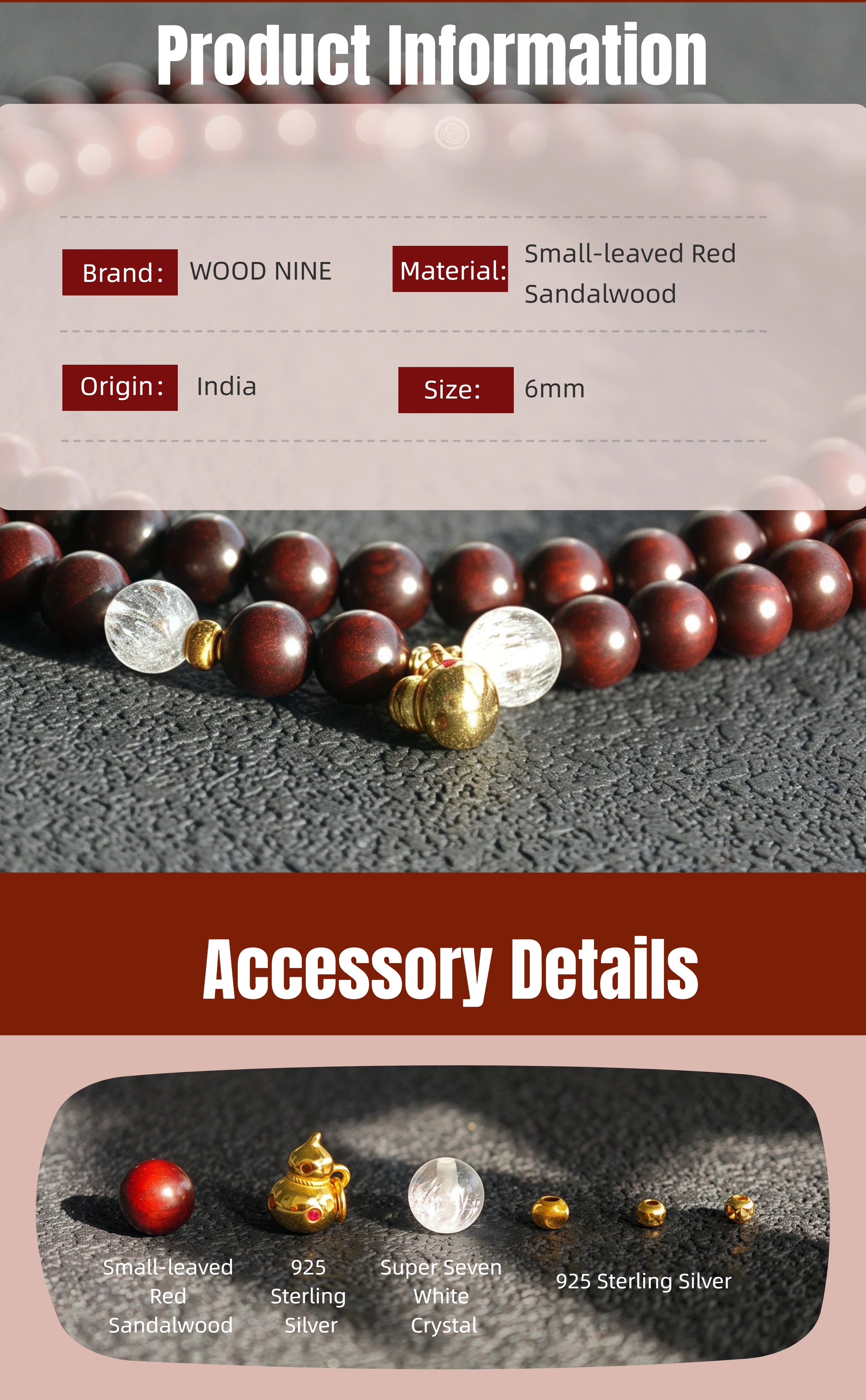 Dainty Gold Women's Bracelet: 6mm Red Sandalwood Super Seven White Crystal - Feng Shui Gift