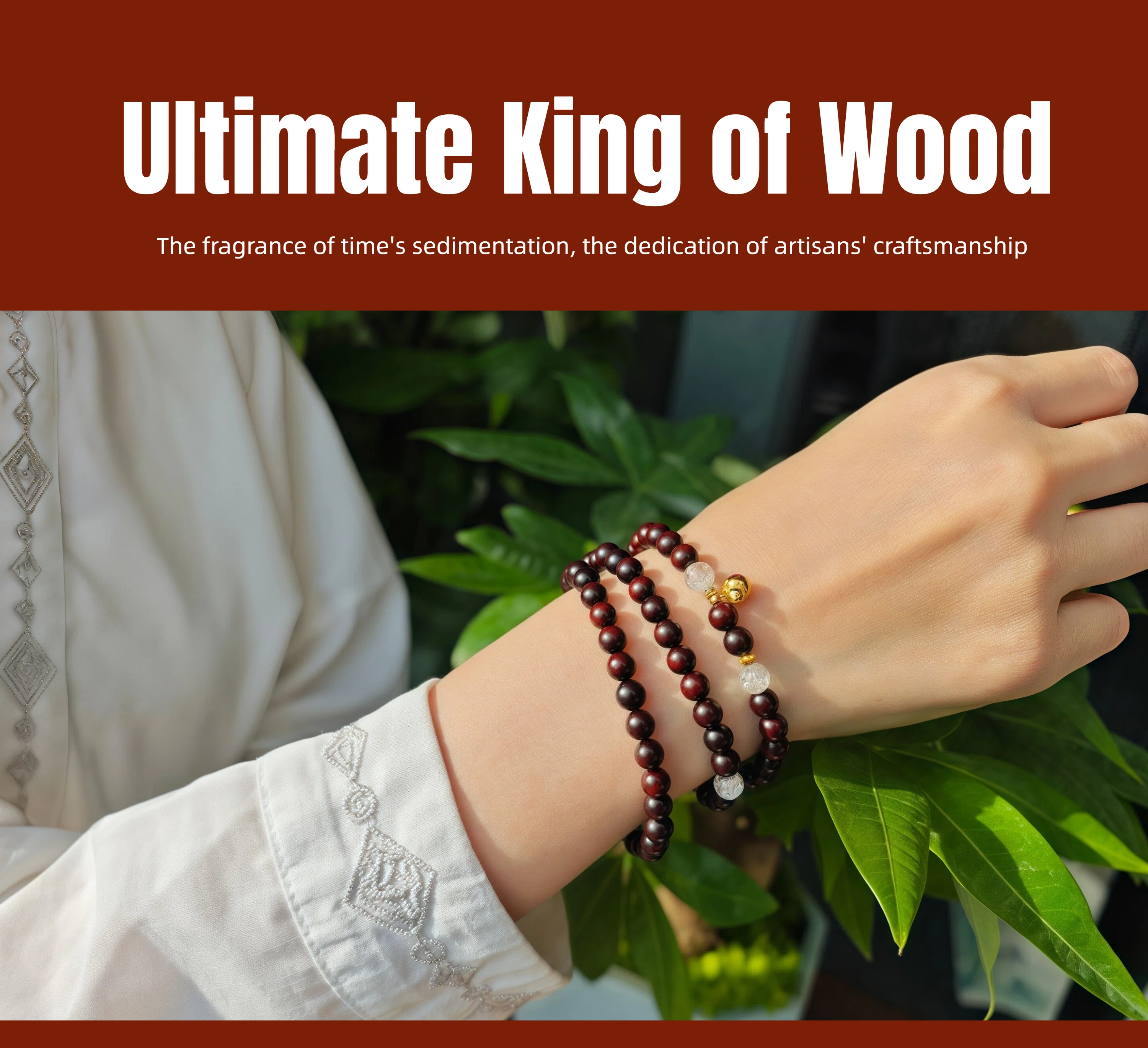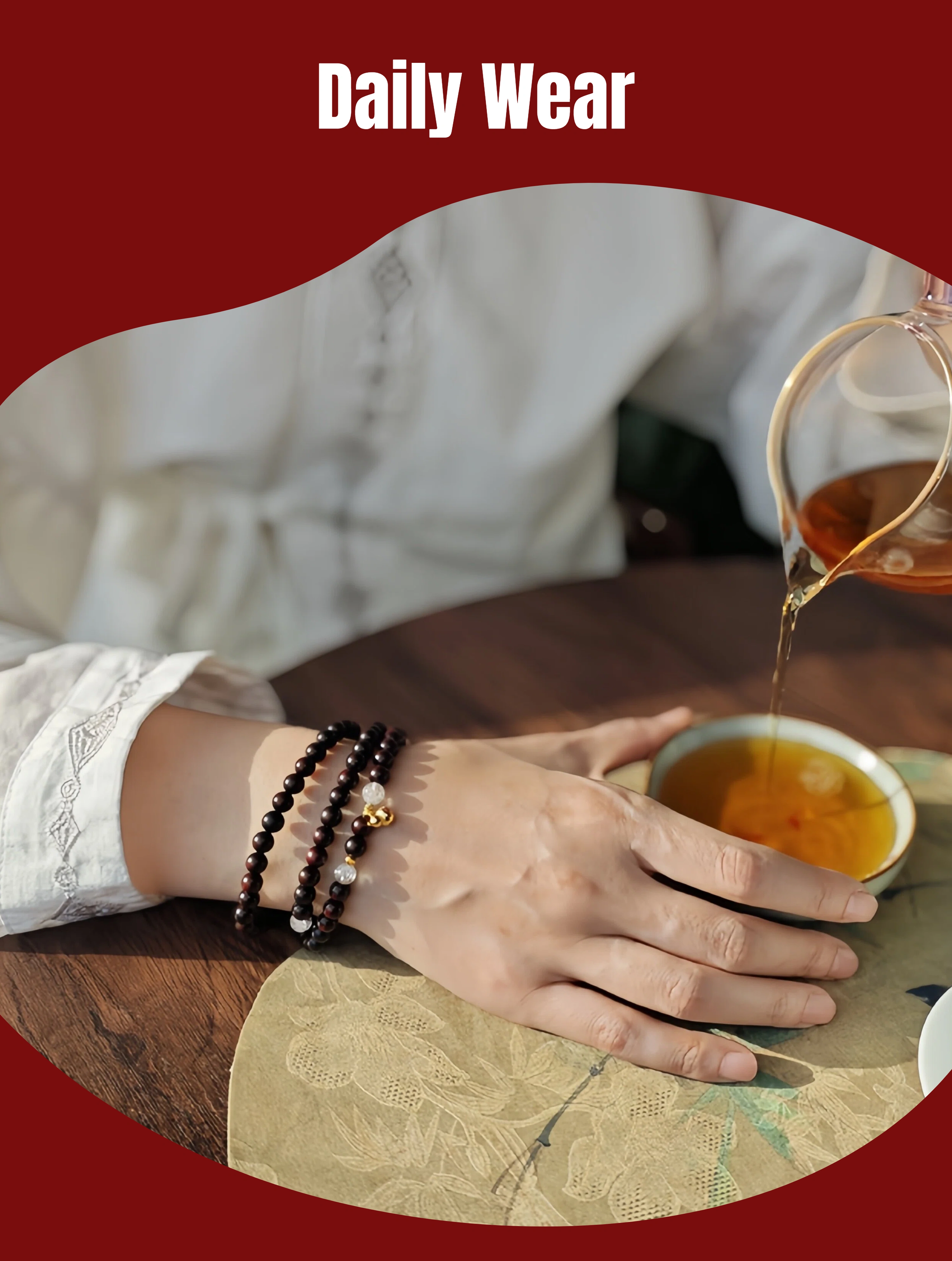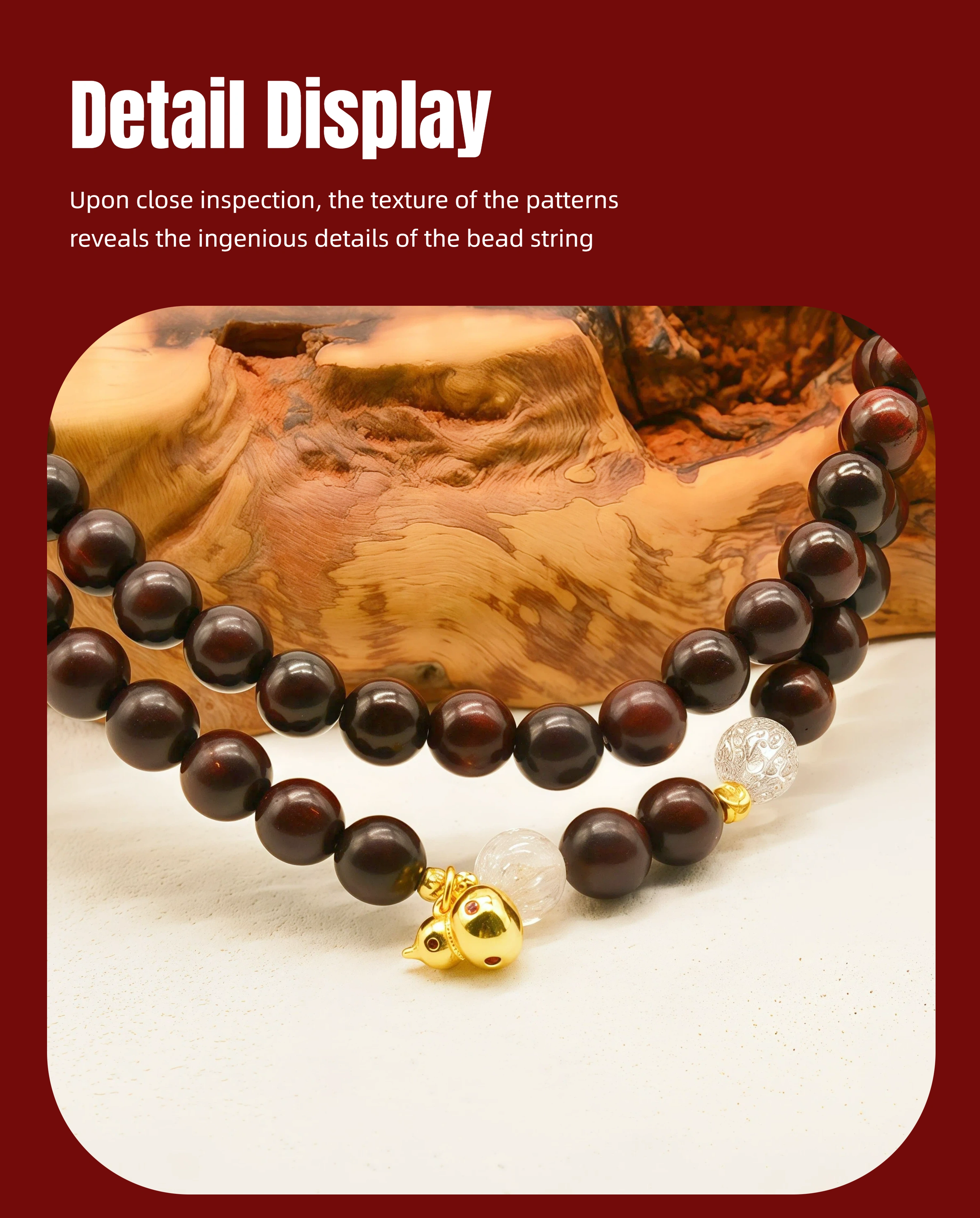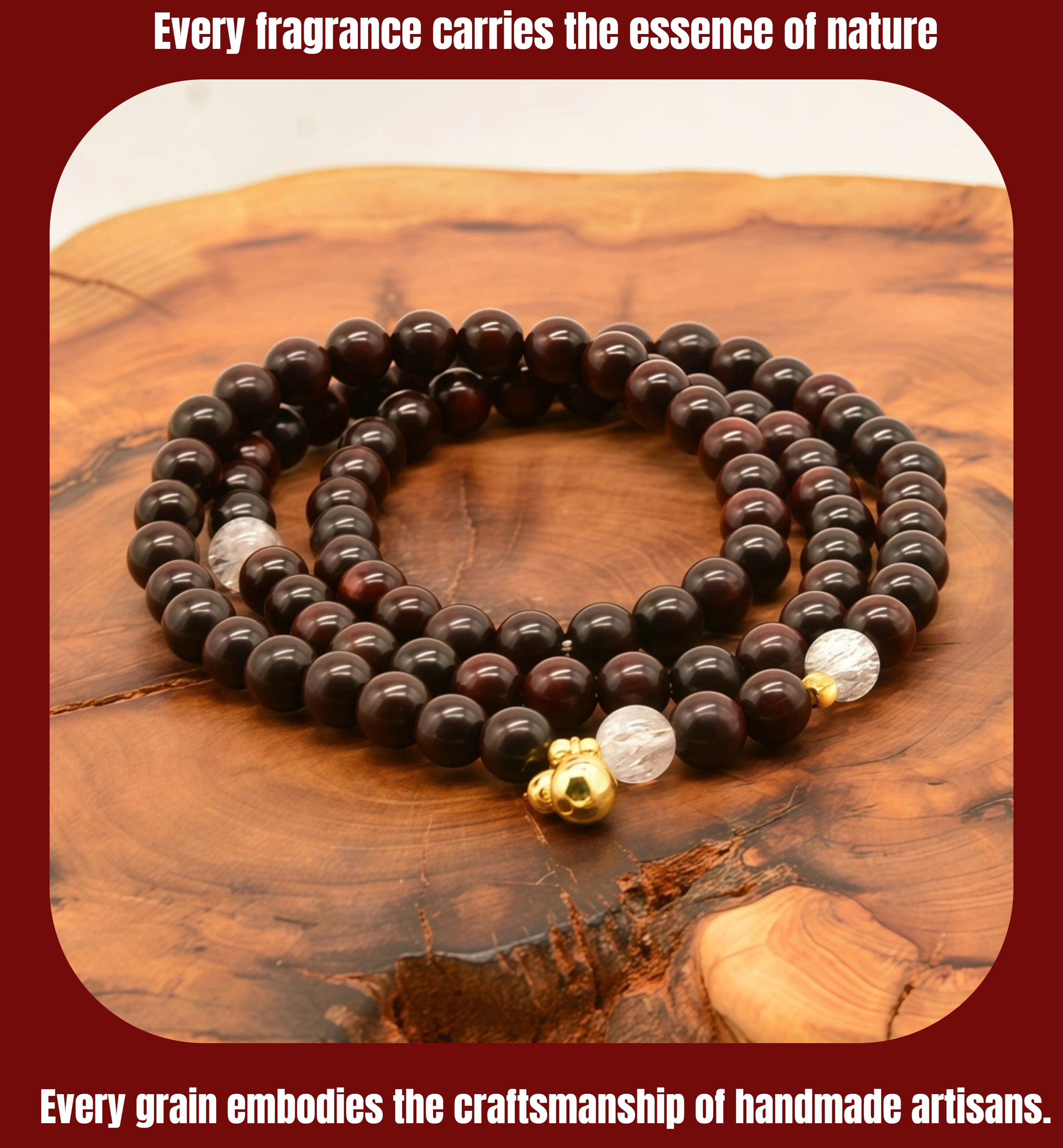 Dainty Gold Women's Bracelet: 6mm Red Sandalwood Super Seven White Crystal - Feng Shui Gift