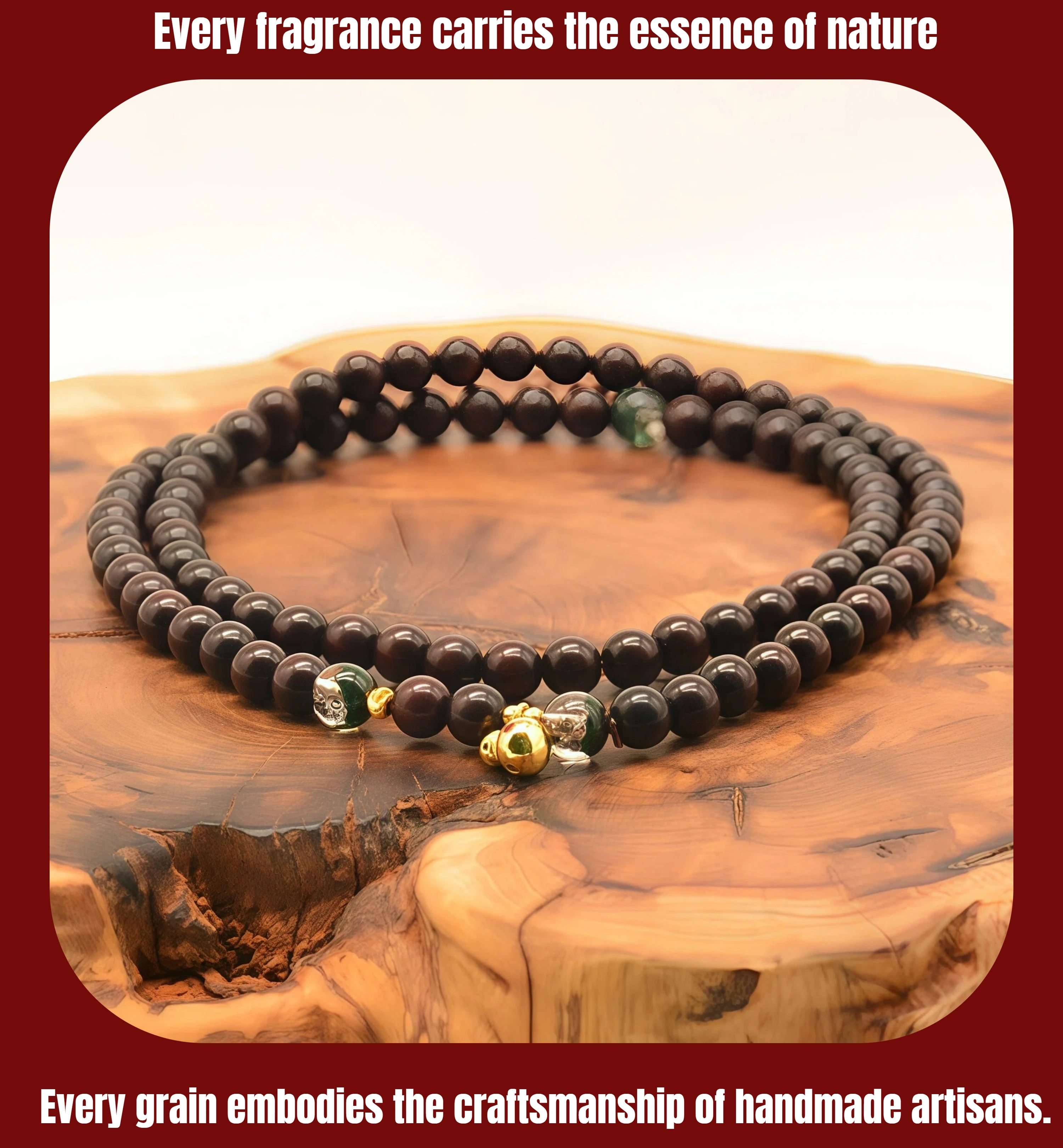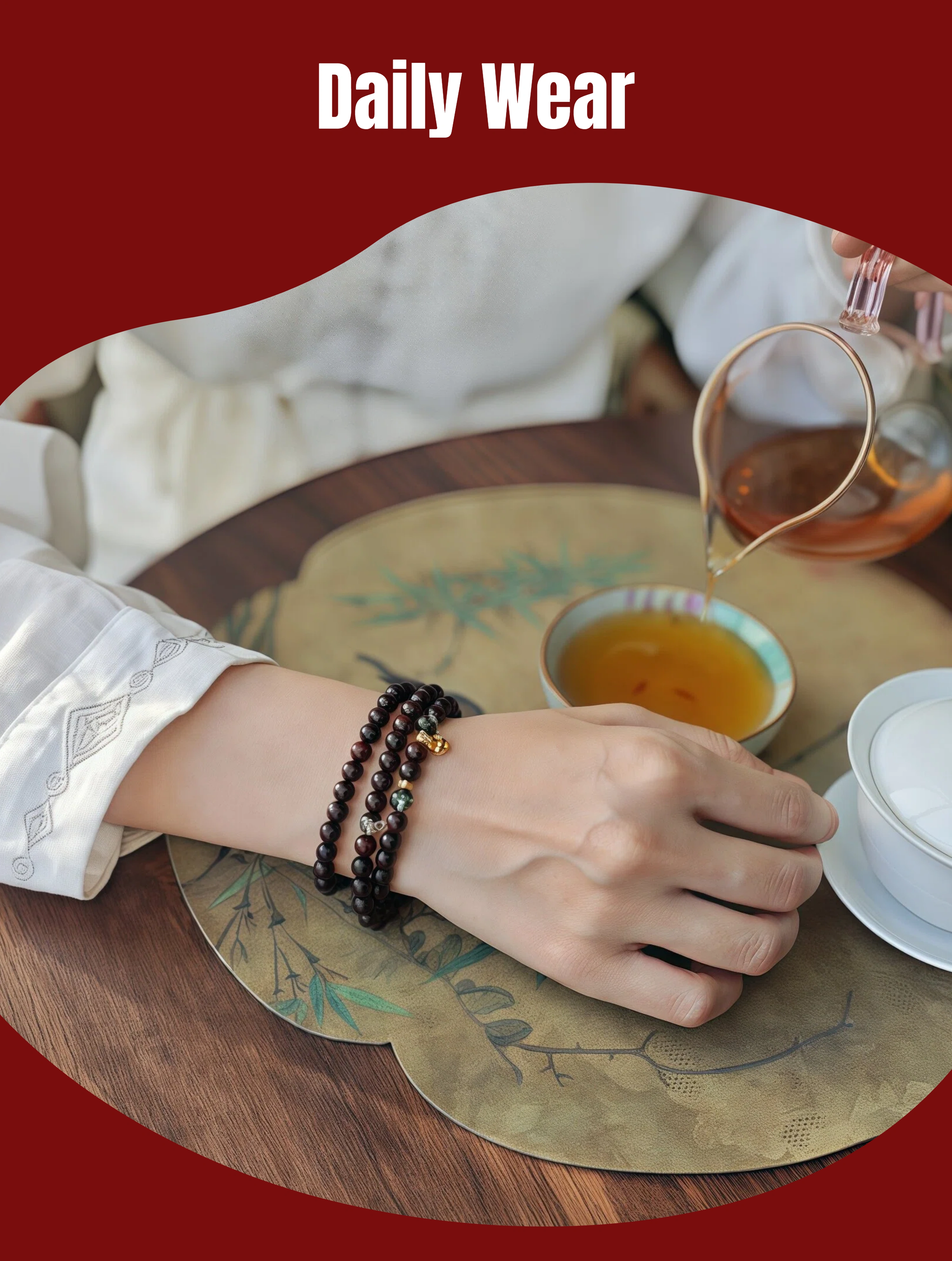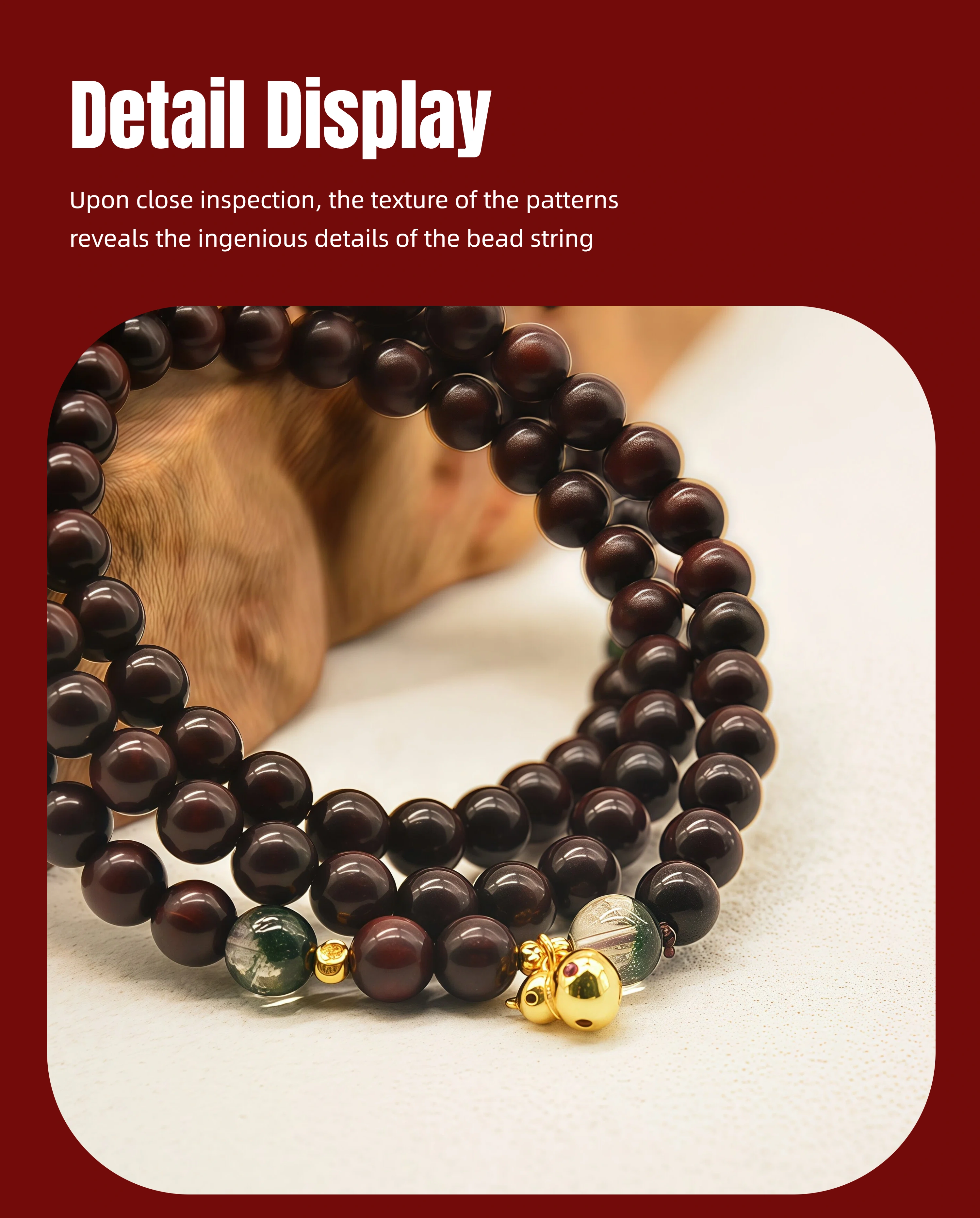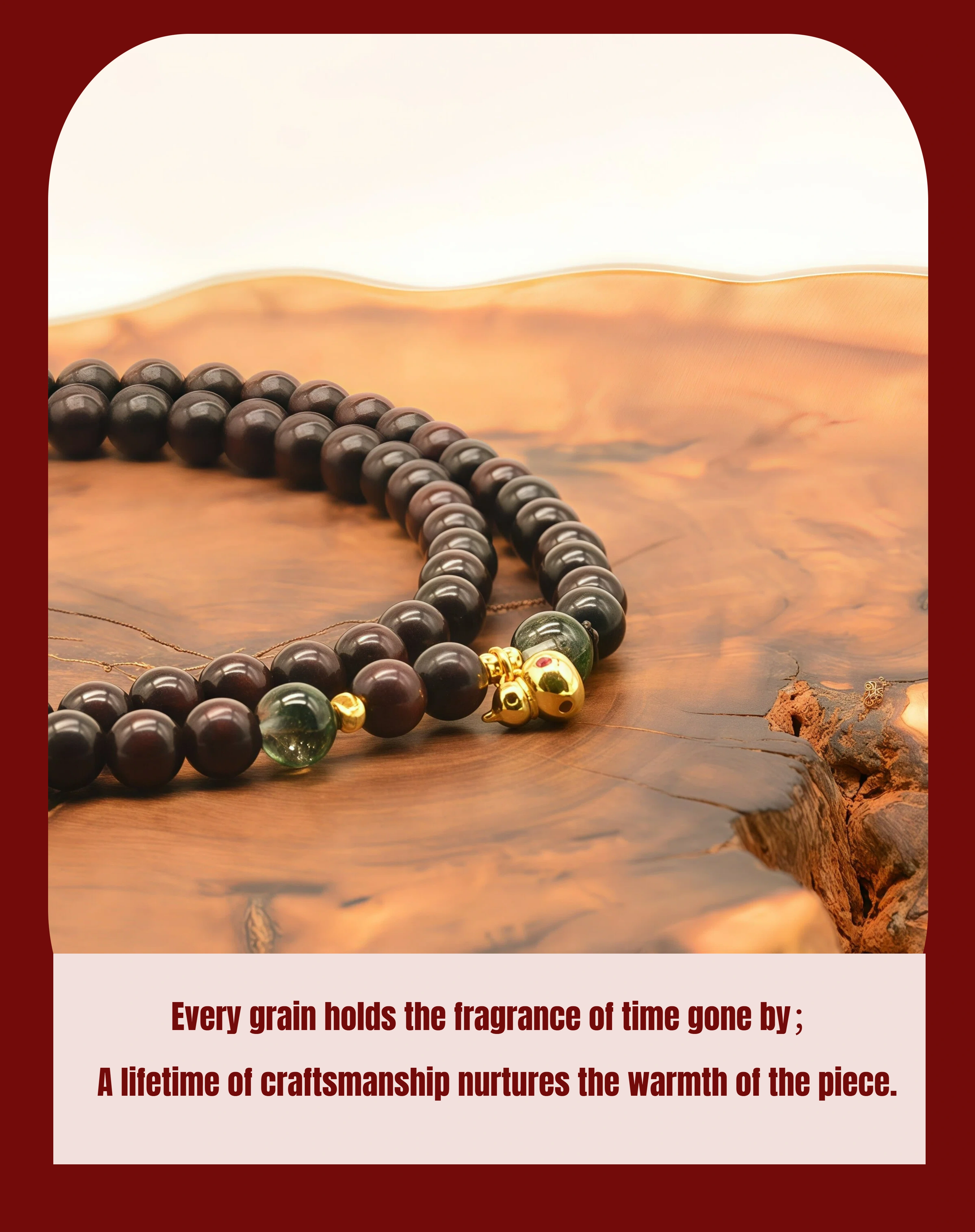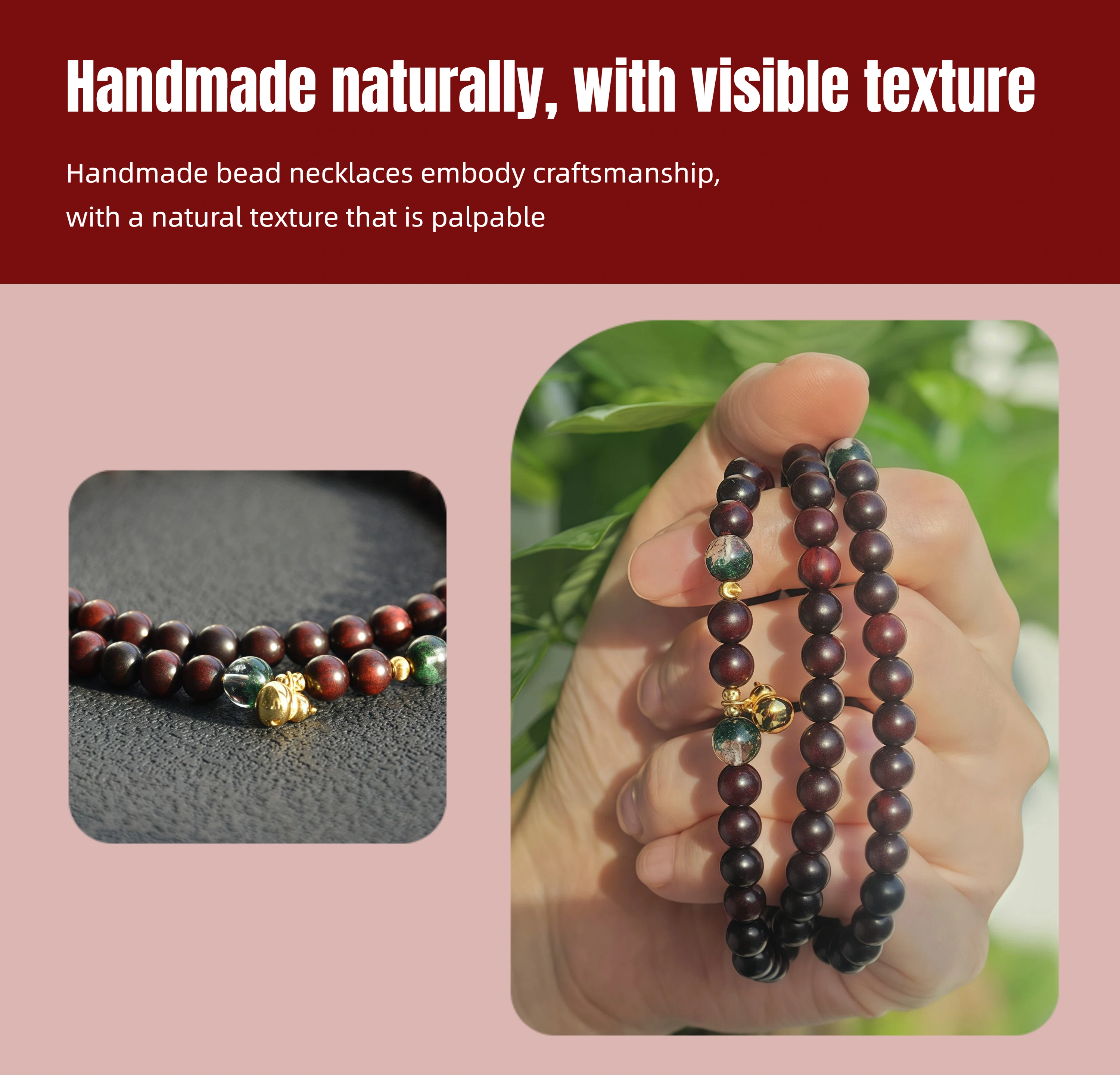 Slim Wood Healing Bracelet: 6mm Red Sandalwood Green Phantom Crystal- Yoga Stackable