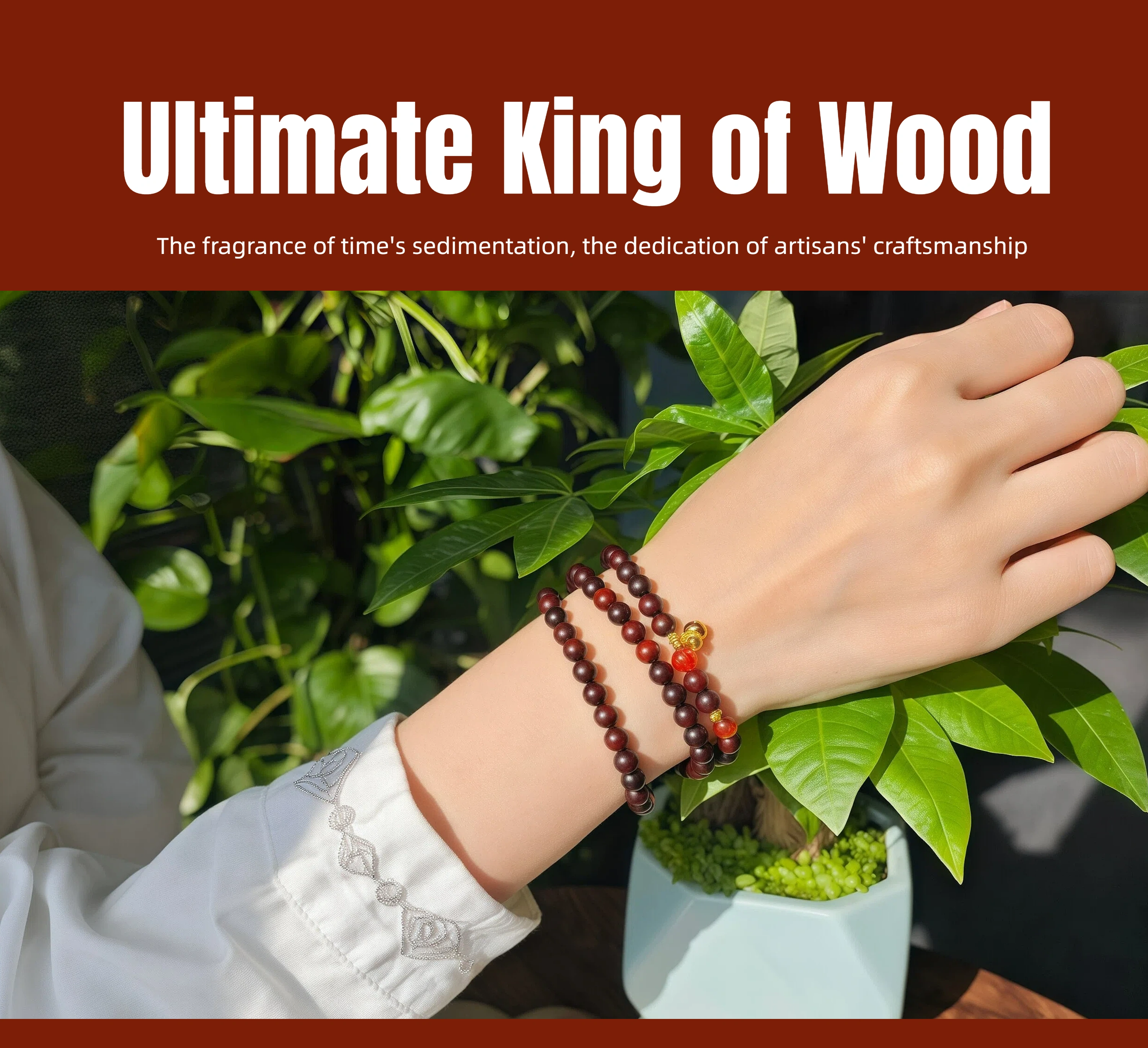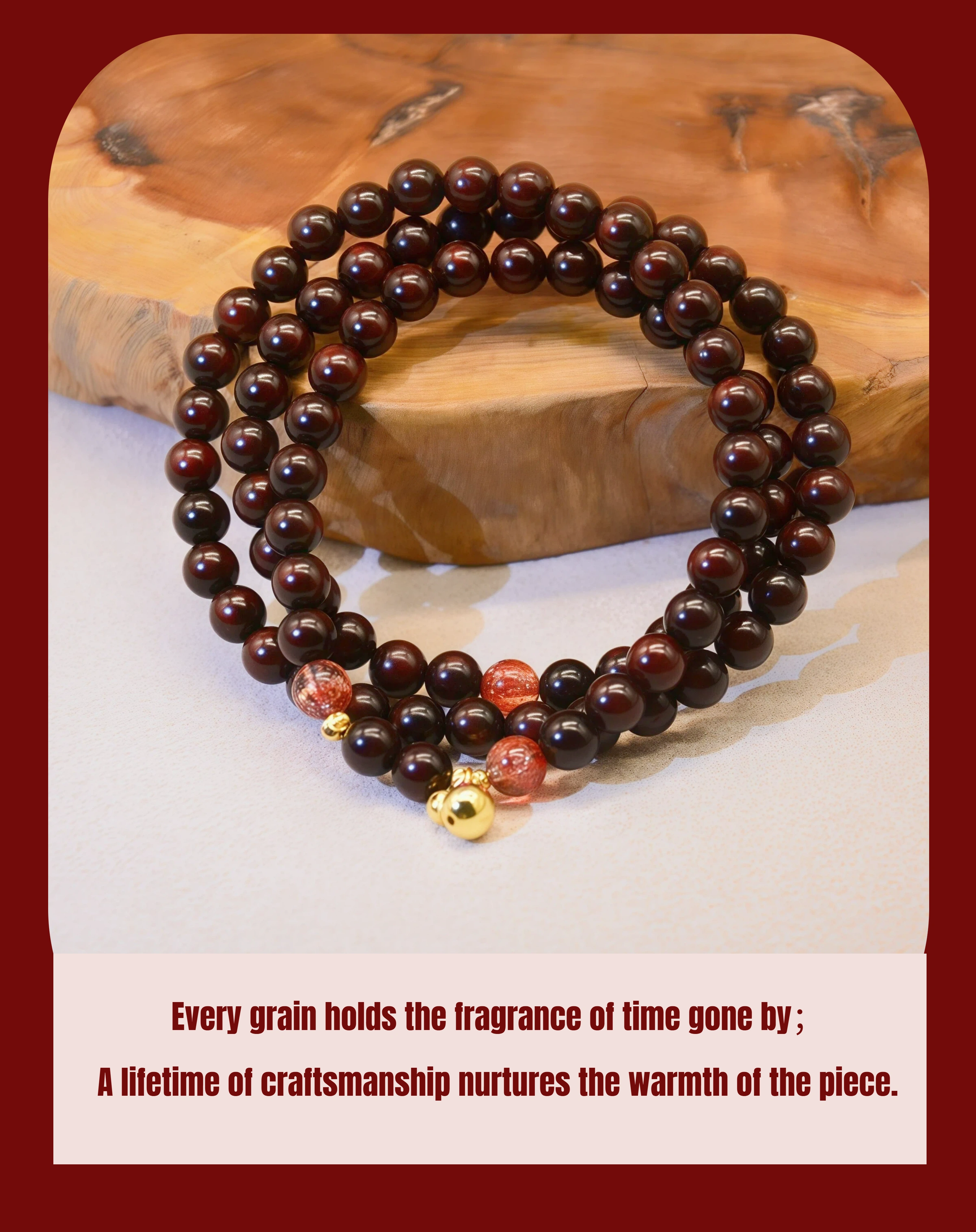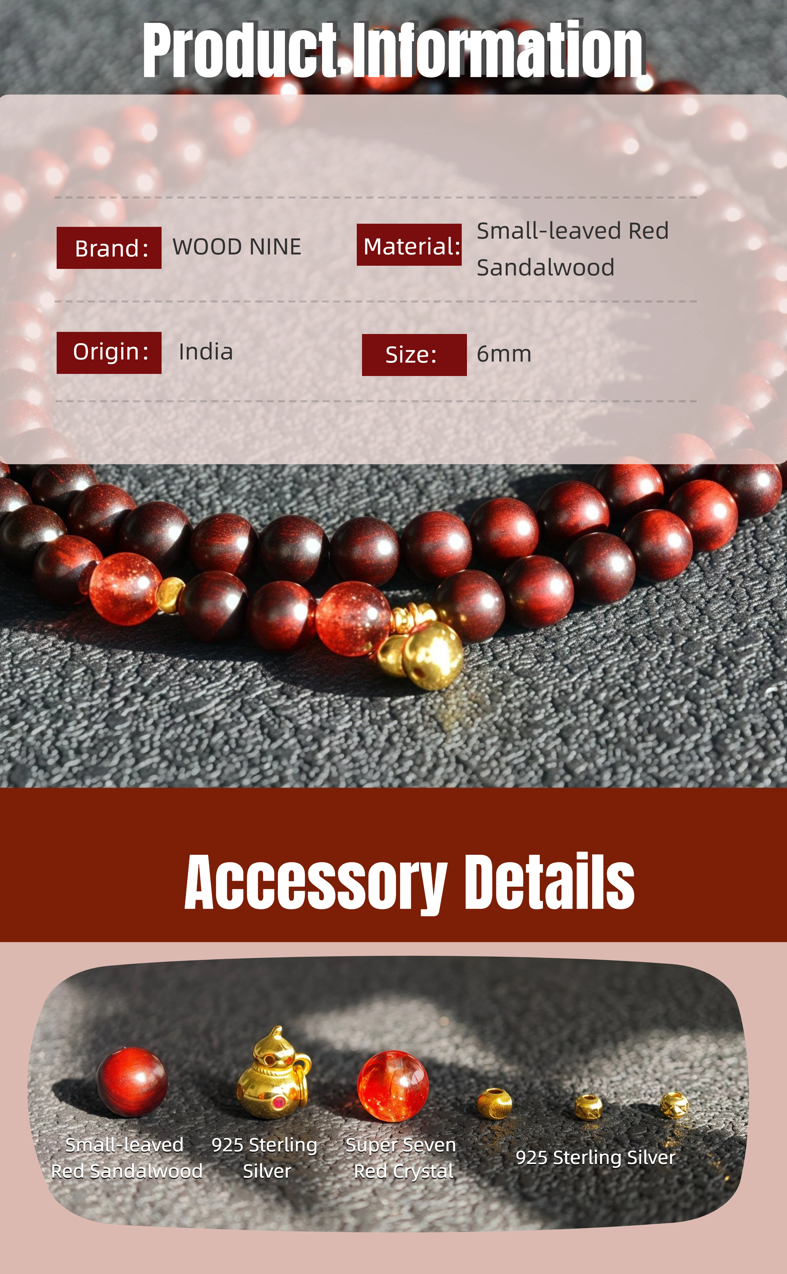 Petite Fire Energy Bracelet: 6mm Red Sandalwood Super Seven Red Crysta - Meditation Stackable