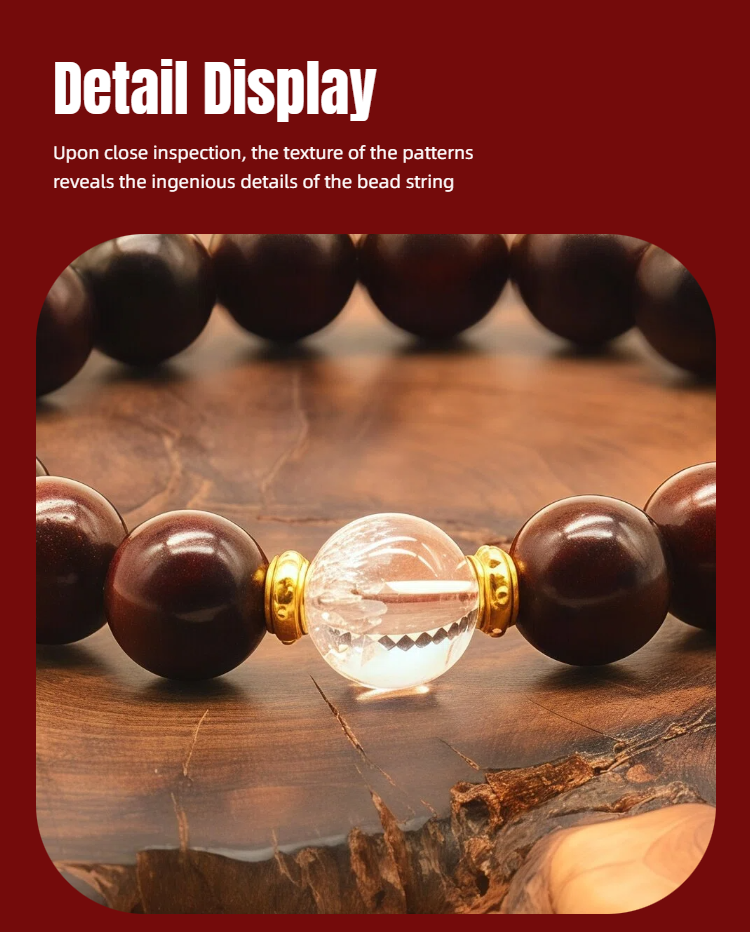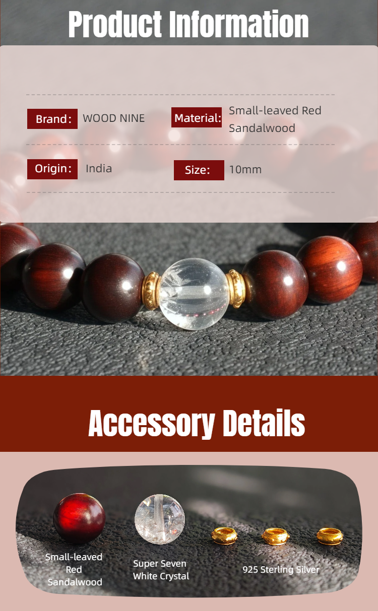 Feng Shui Men's Good Luck Bracelet: 10mm Red Sandalwood Super Seven White Crystal - Workplace