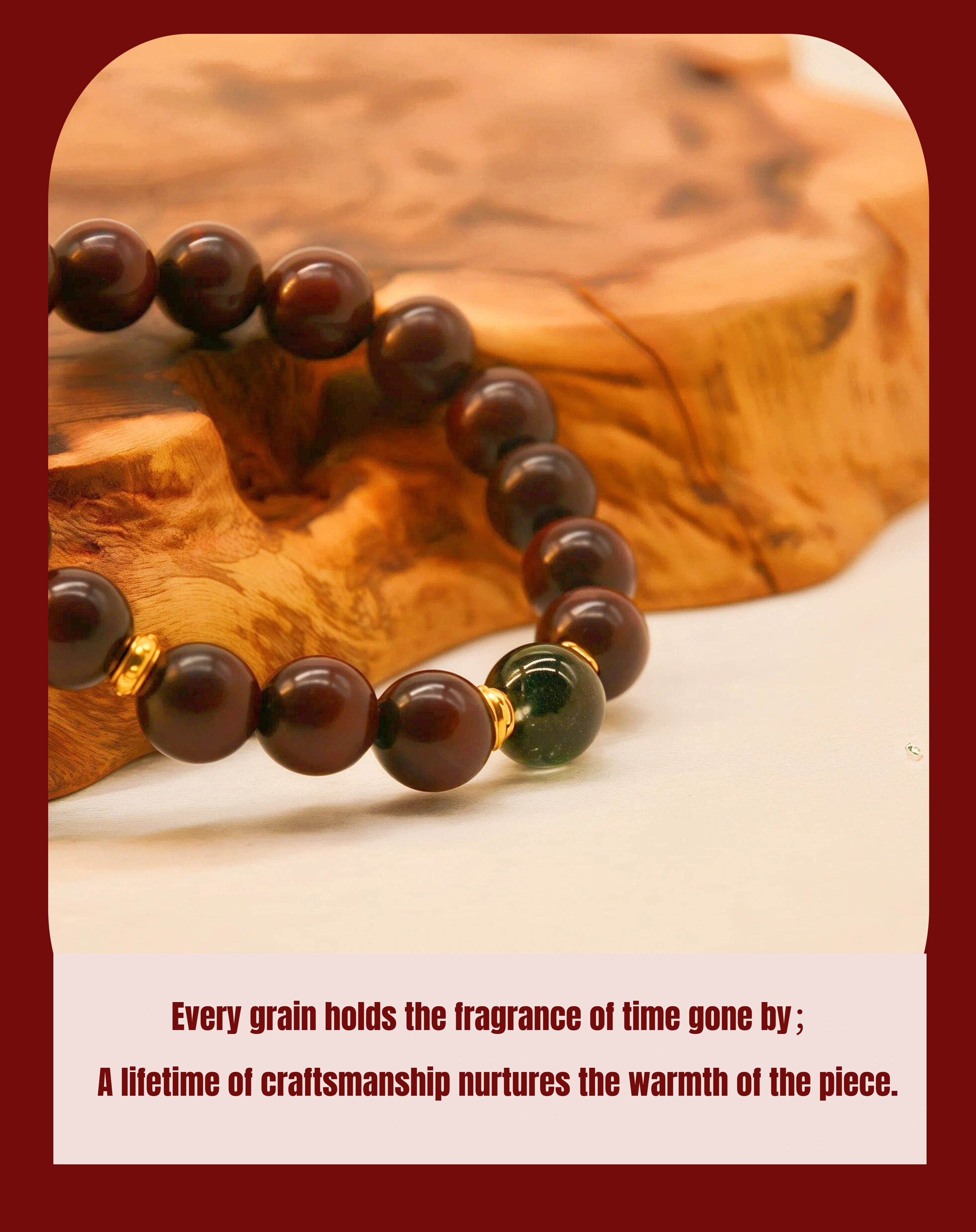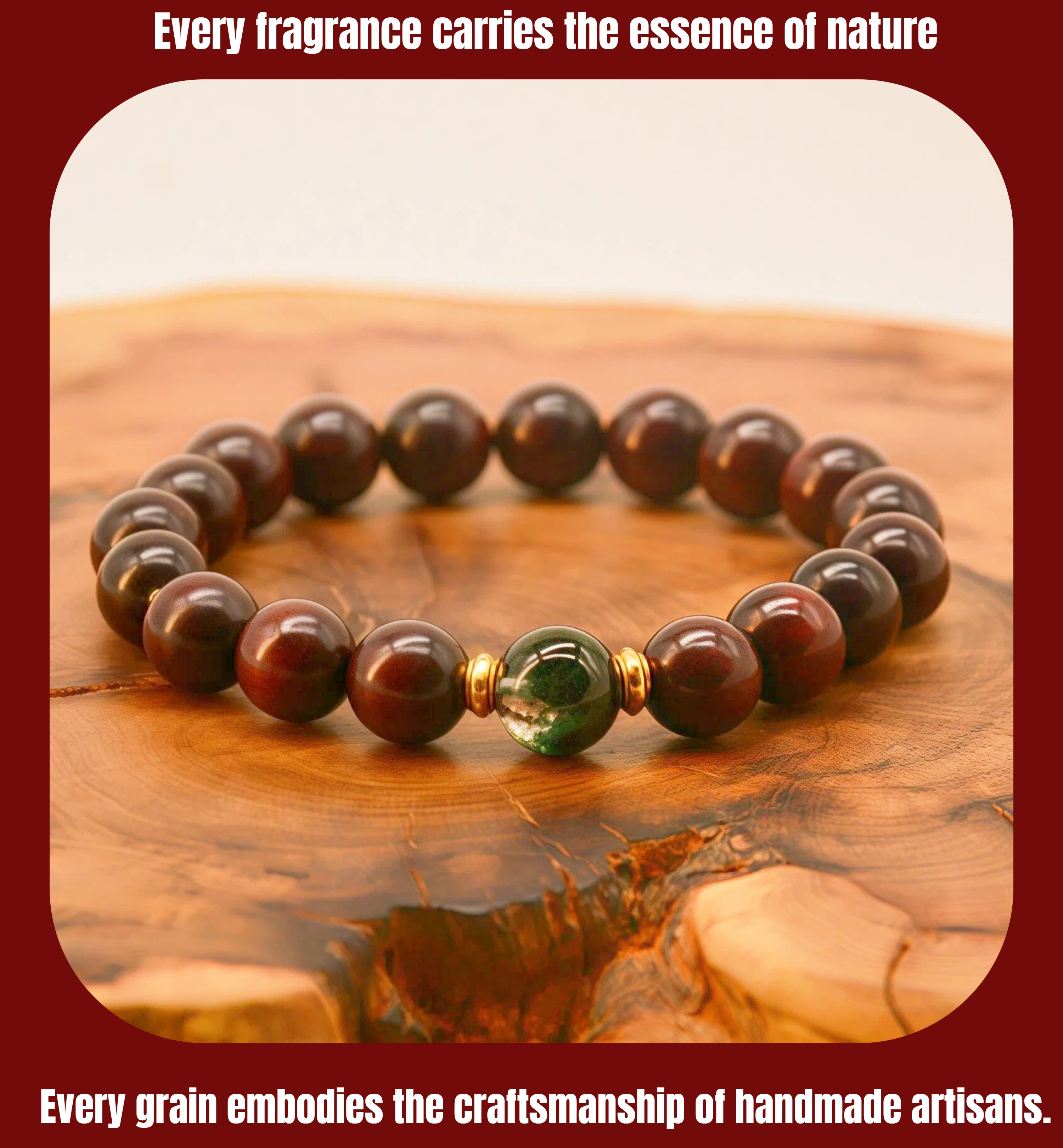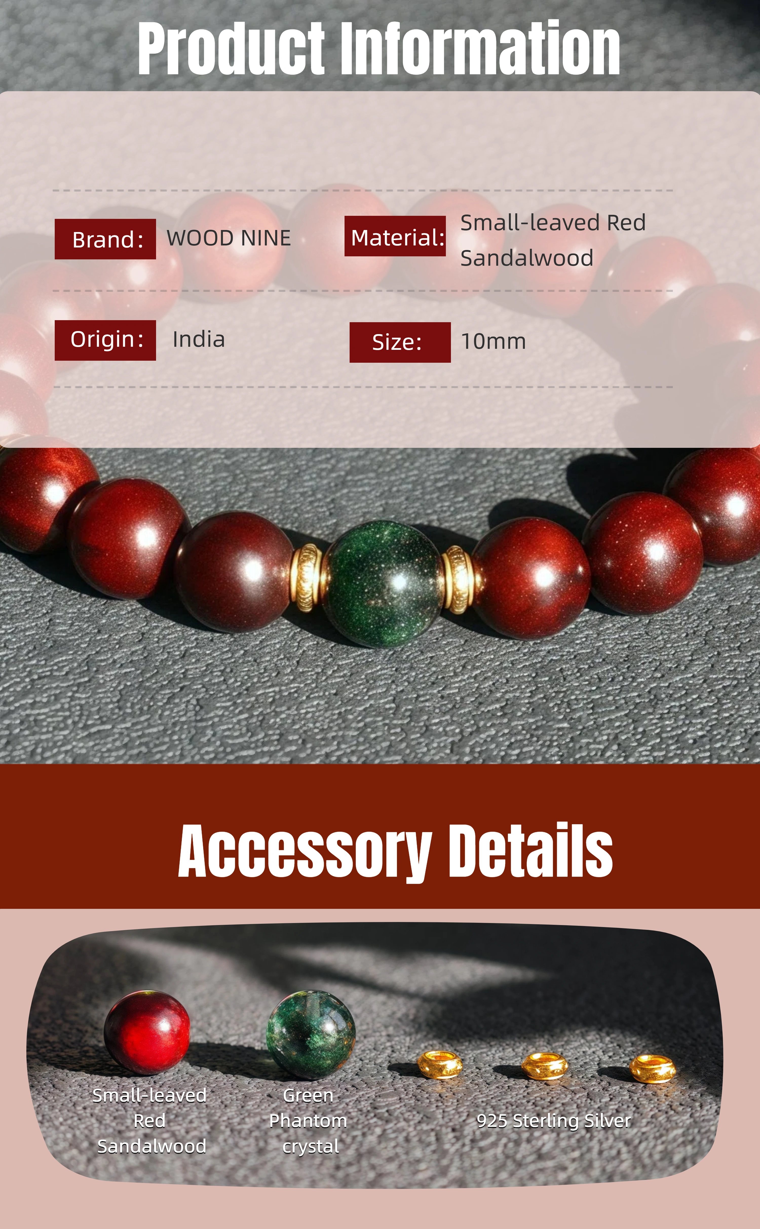 Wood Healing Energy Bracelet: 10mm Red Sandalwood Green Phantom Crystal - Daily Growth