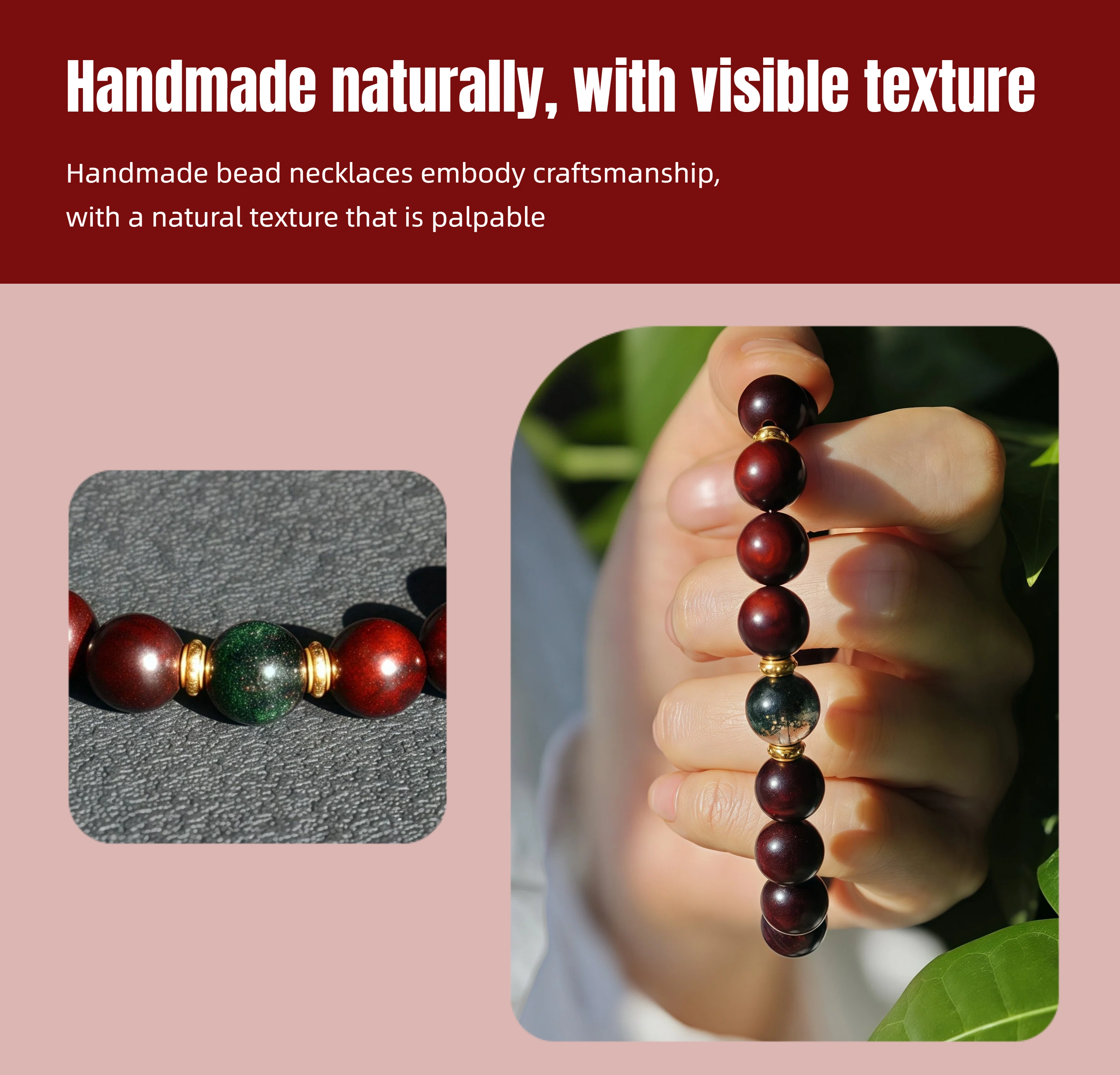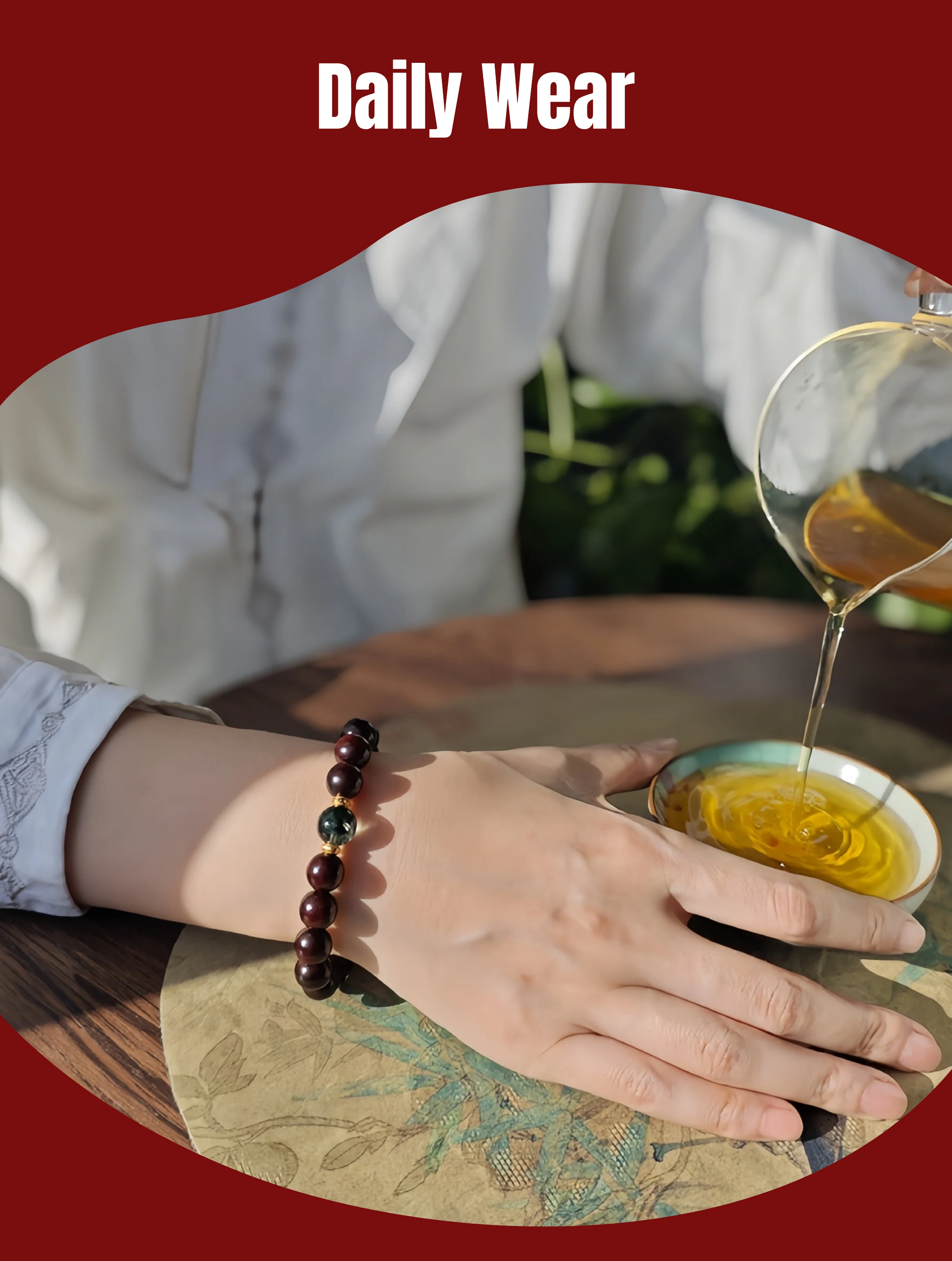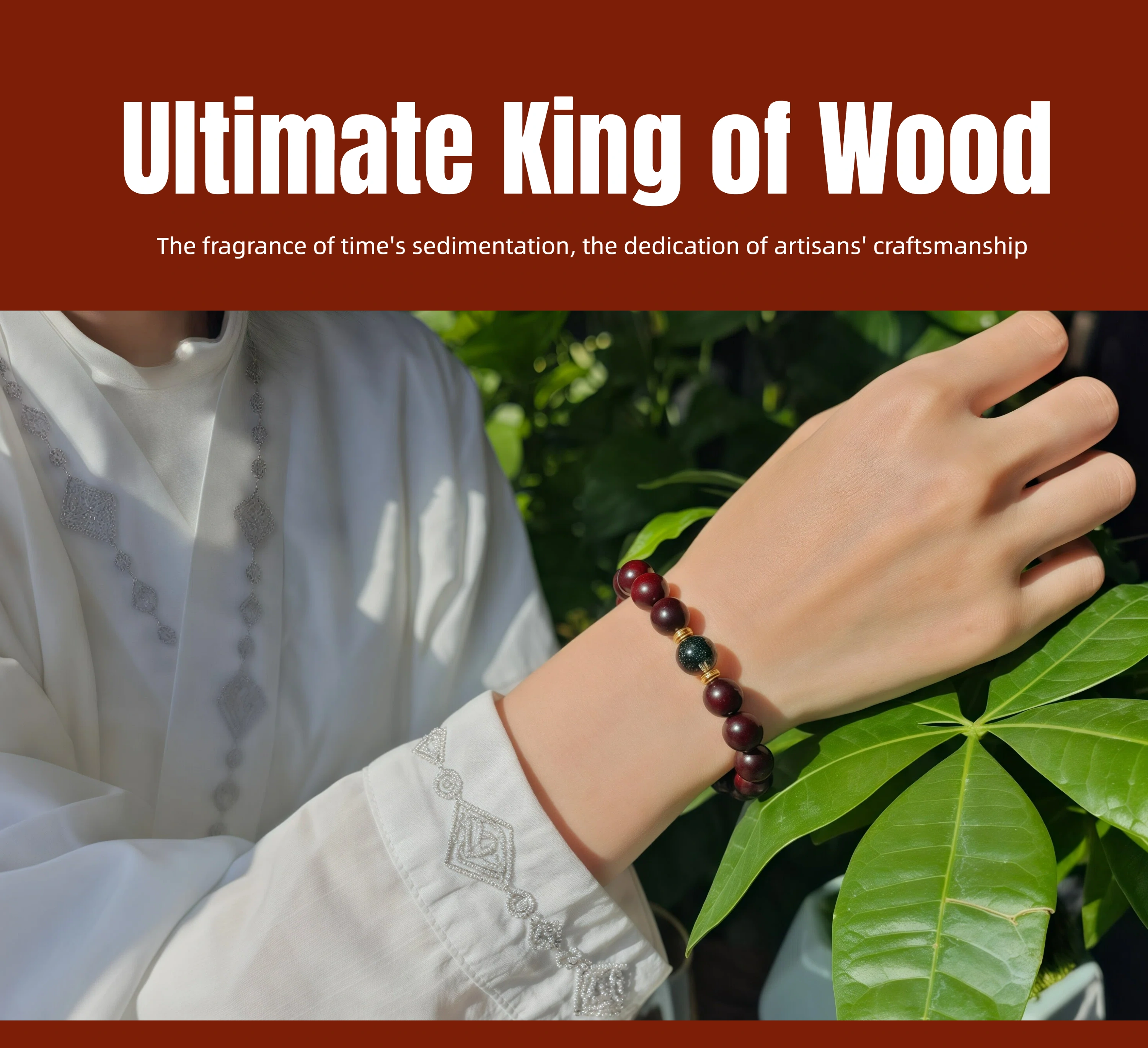 Wood Healing Energy Bracelet: 10mm Red Sandalwood Green Phantom Crystal - Daily Growth