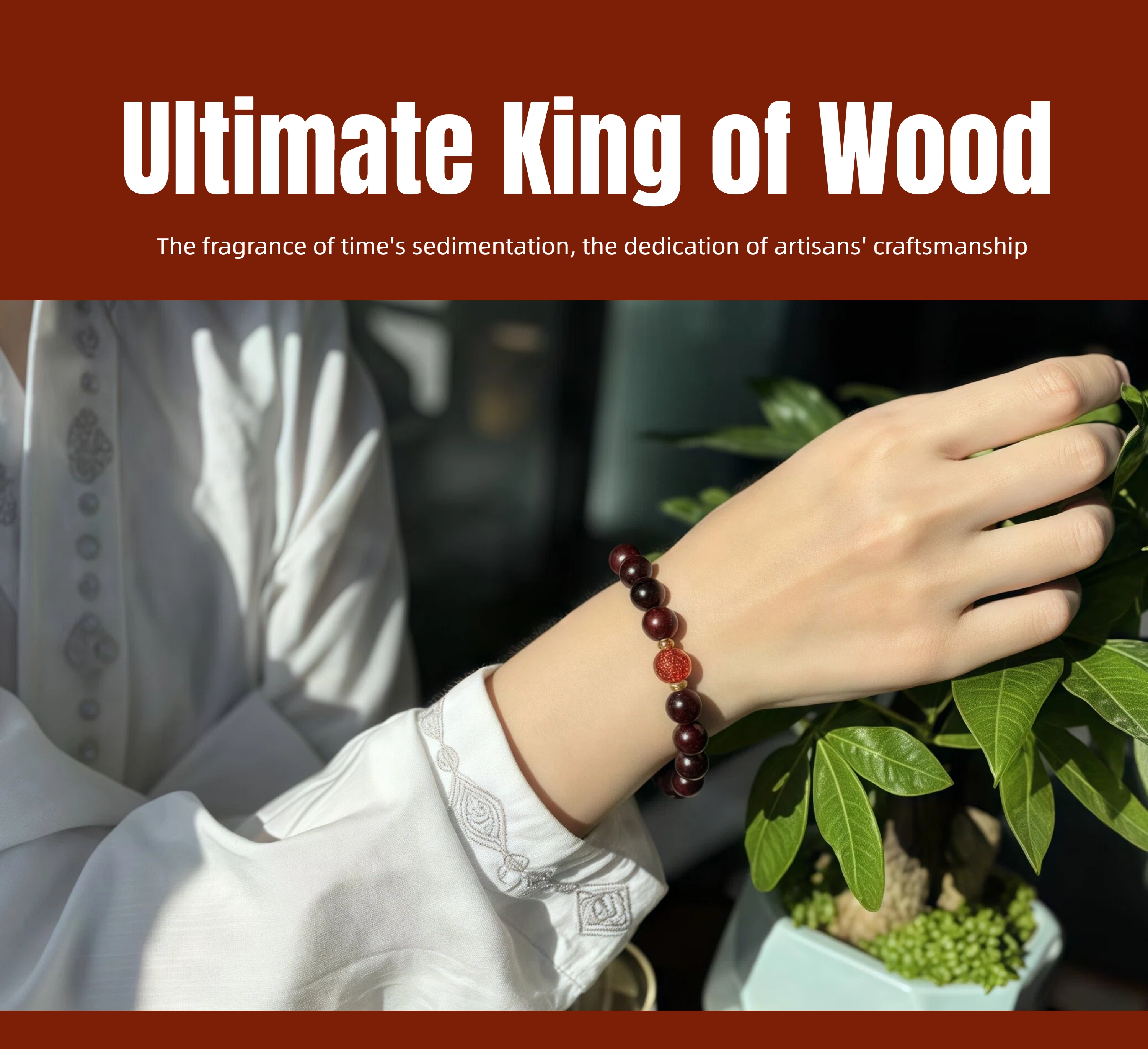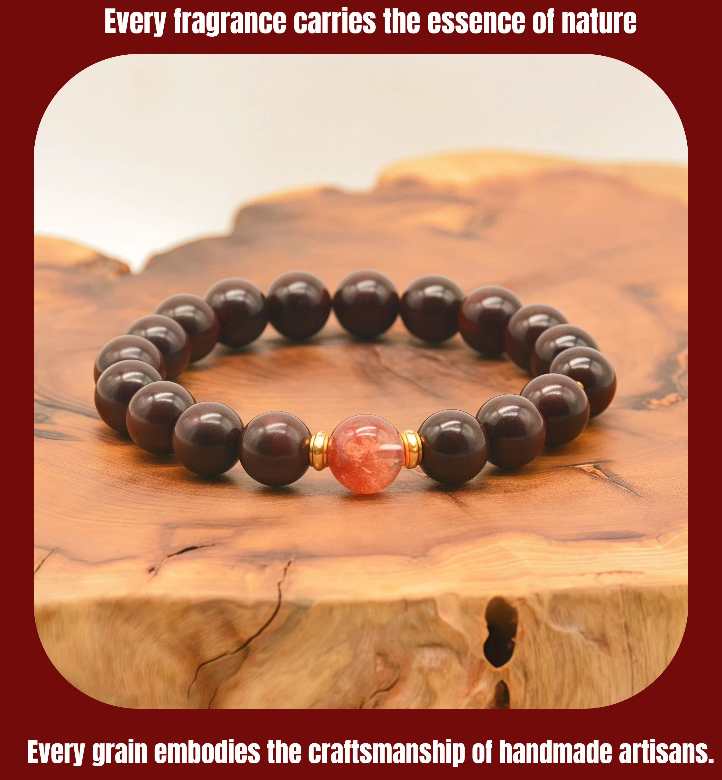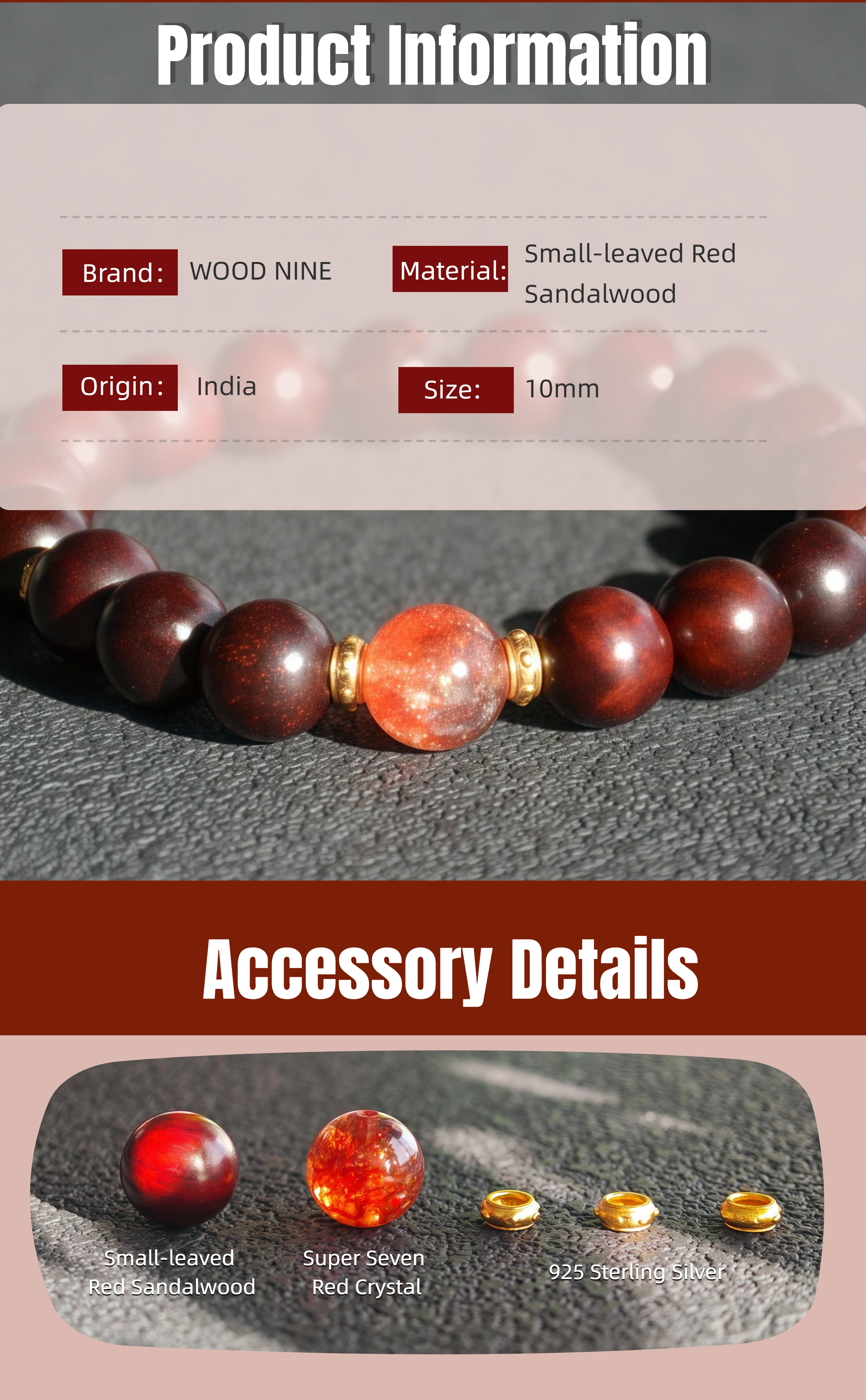 Fire Energy Men's Bracelet: 10mm Red Sandalwood Super Seven Red Crystal - Passion Motivation