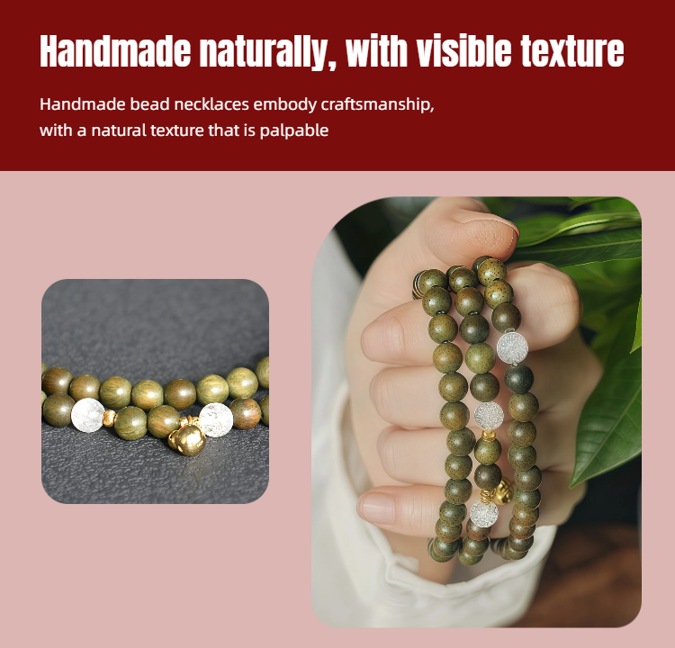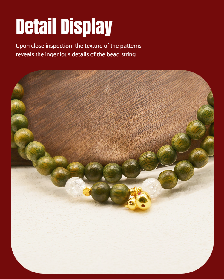 Dainty Feng Shui Women's Bracelet: 6mm Green Sandalwood Super Seven White Crystal - Energy