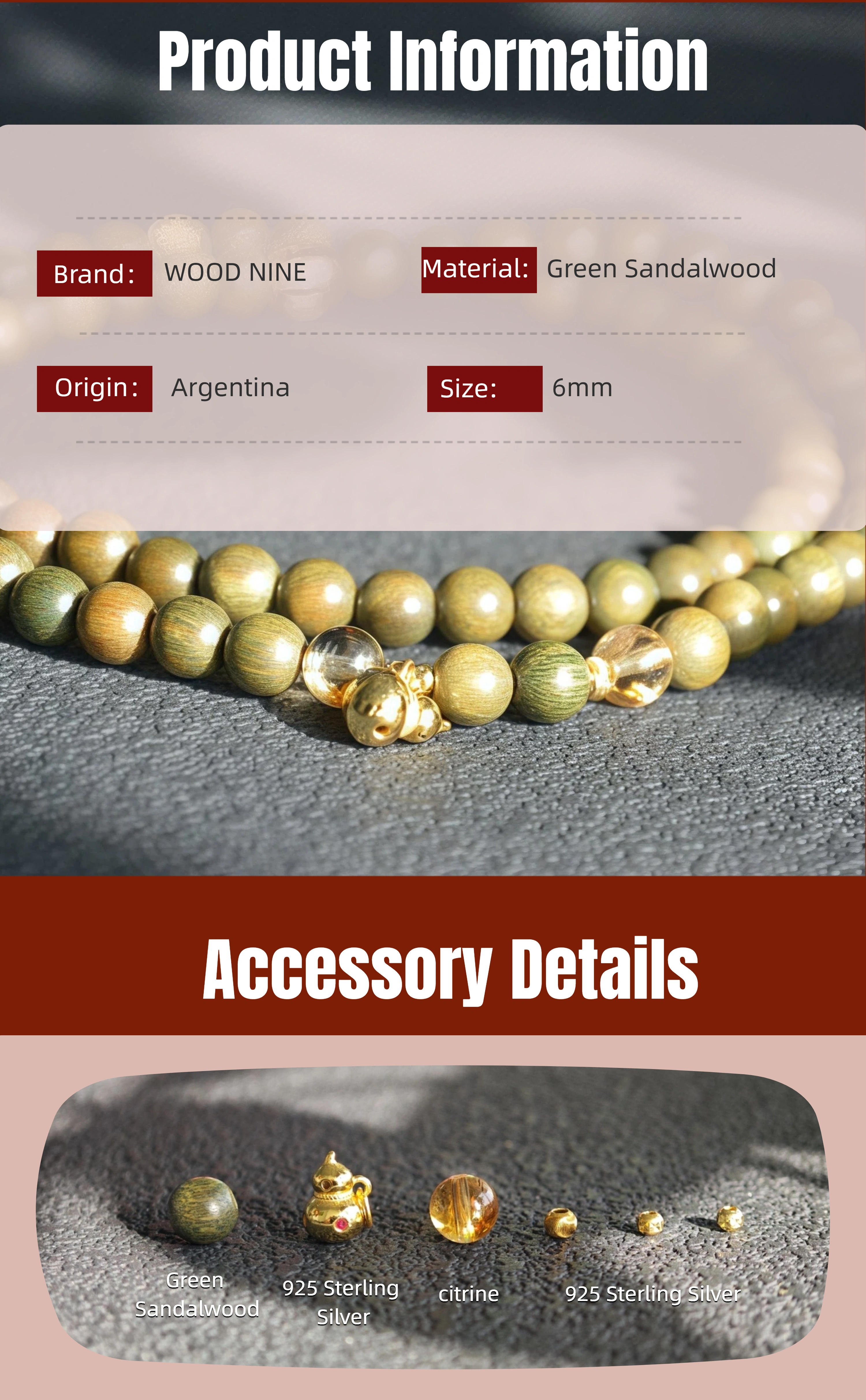 Delicate Protection Bracelet: 6mm Green Sandalwood Citrine - Feng Shui Gift