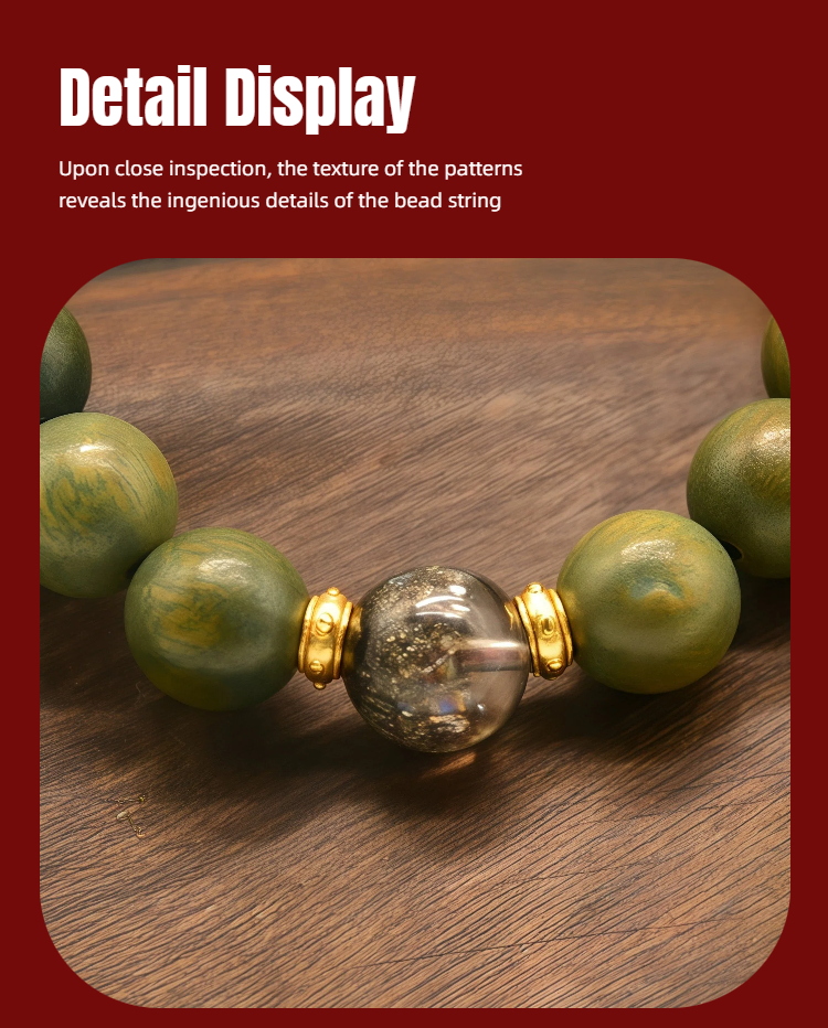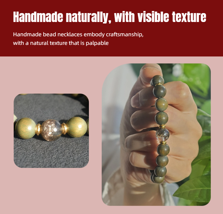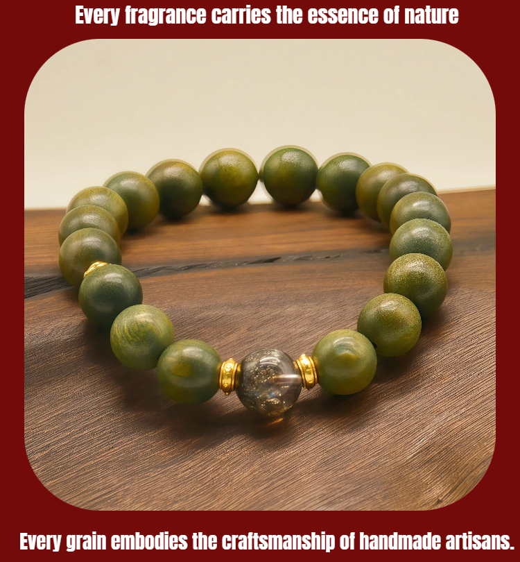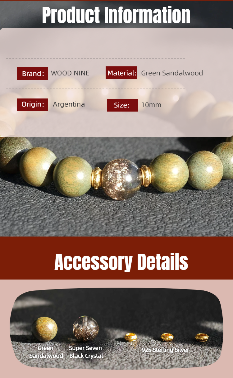 Water Element Healing Bracelet: 10mm Green Sandalwood Super Seven Black Crystal -Meditation