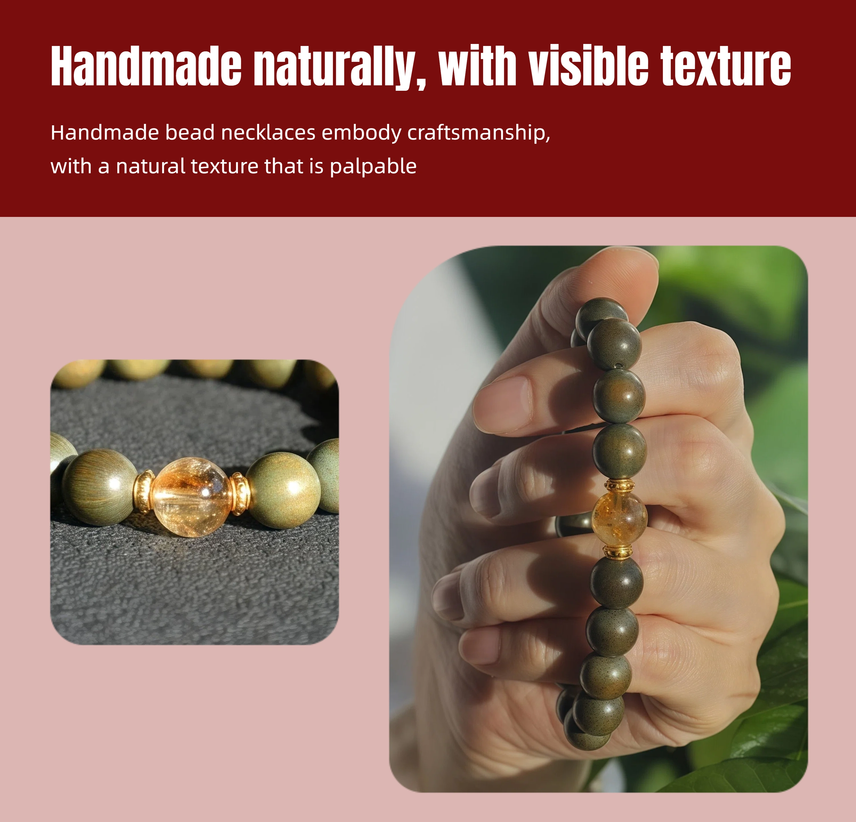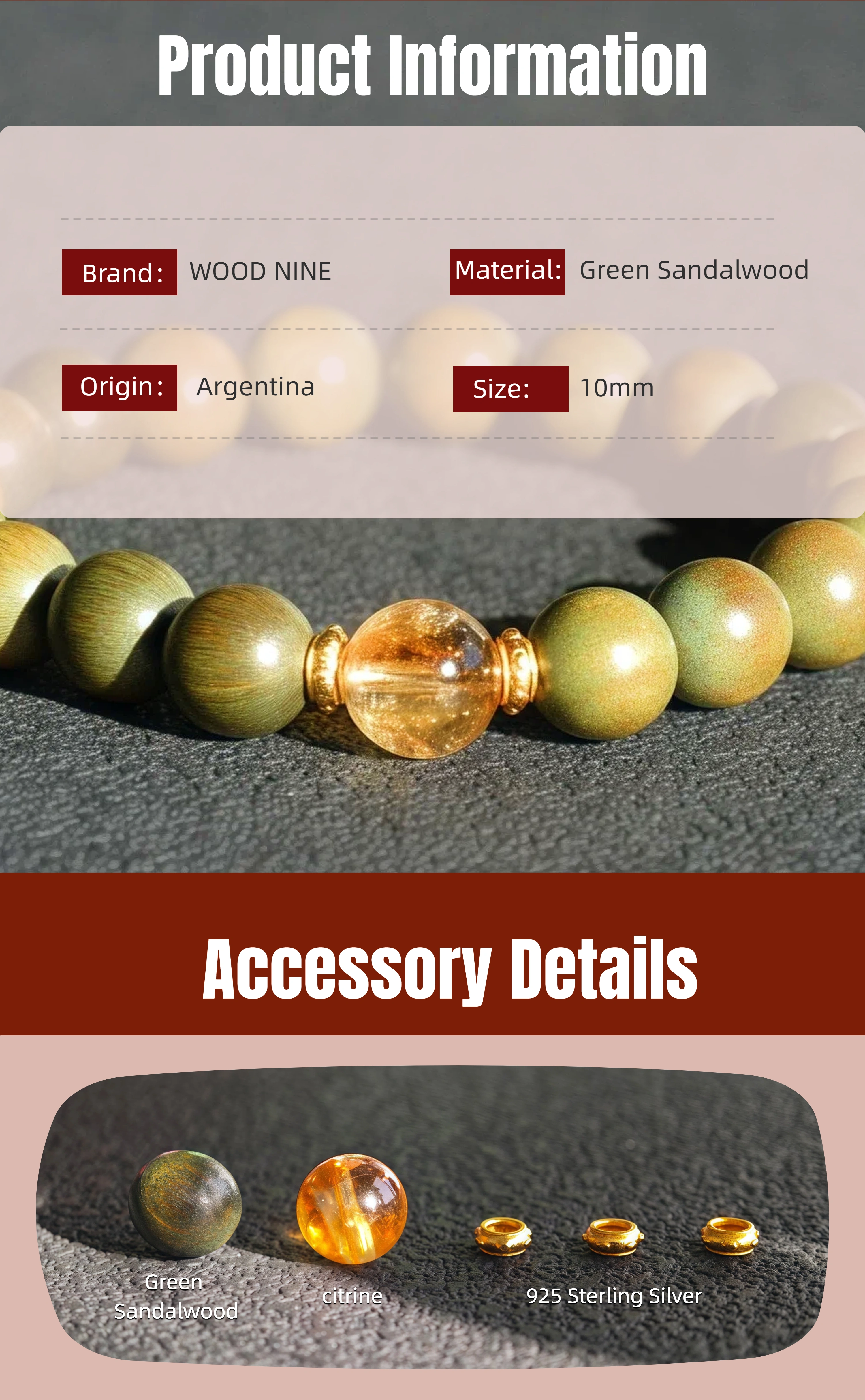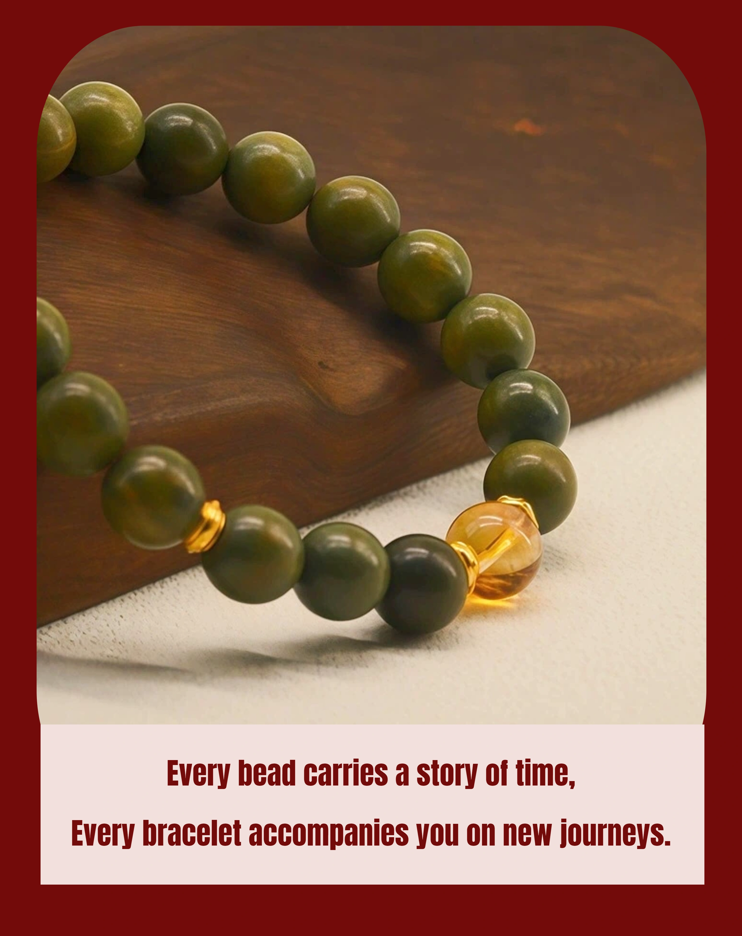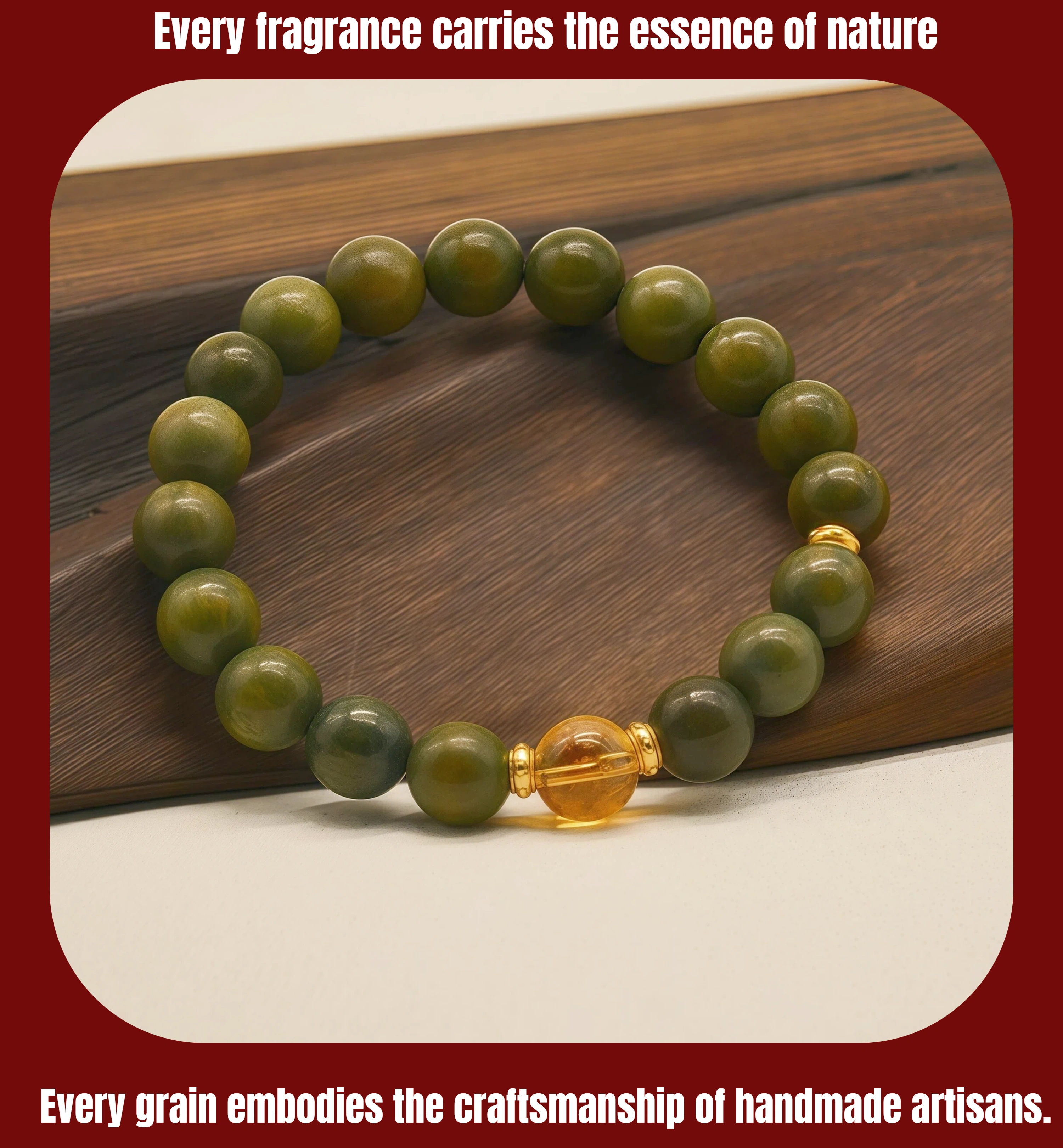 Earth Protection Bracelet: 10mm Green Sandalwood Citrine - Daily Stability