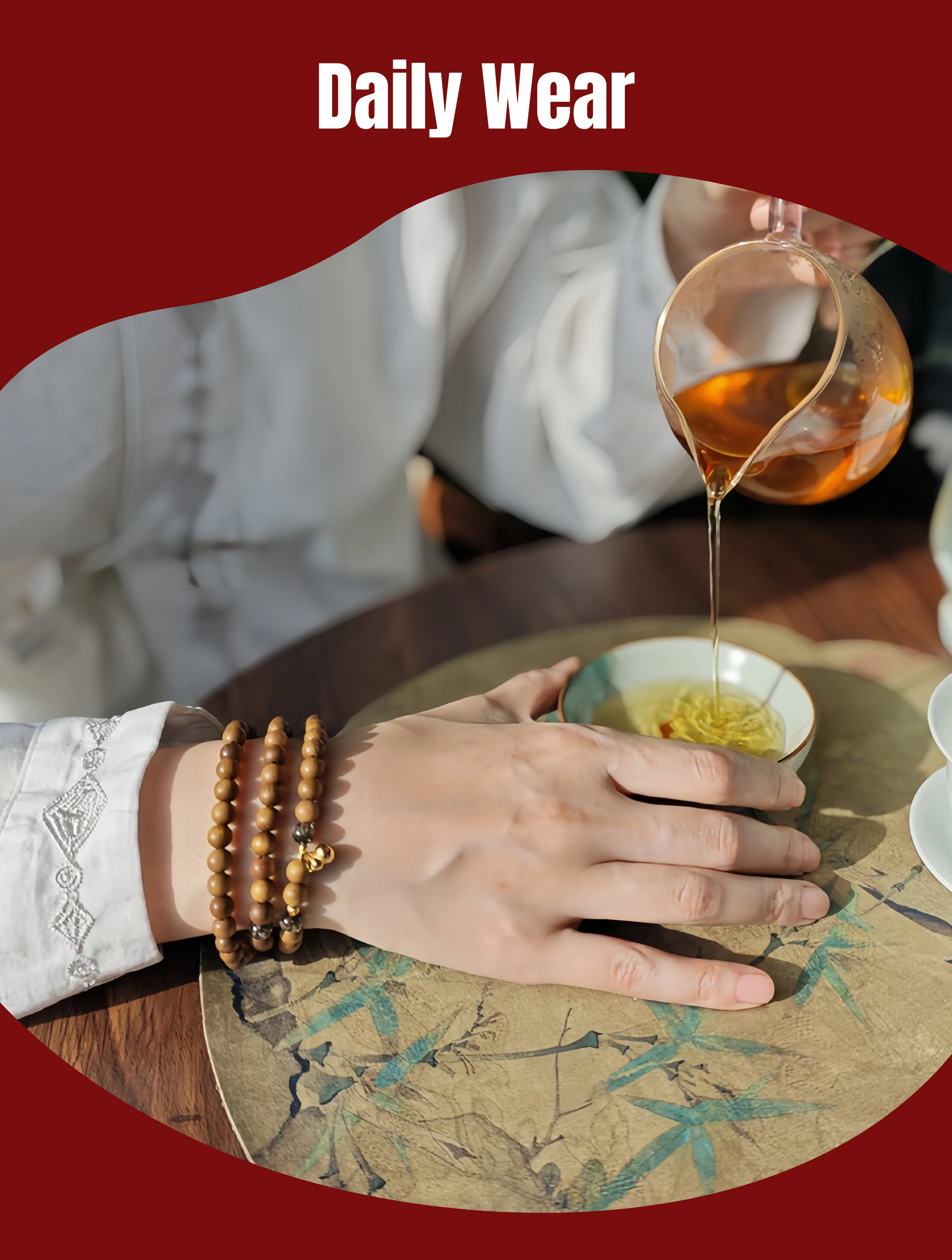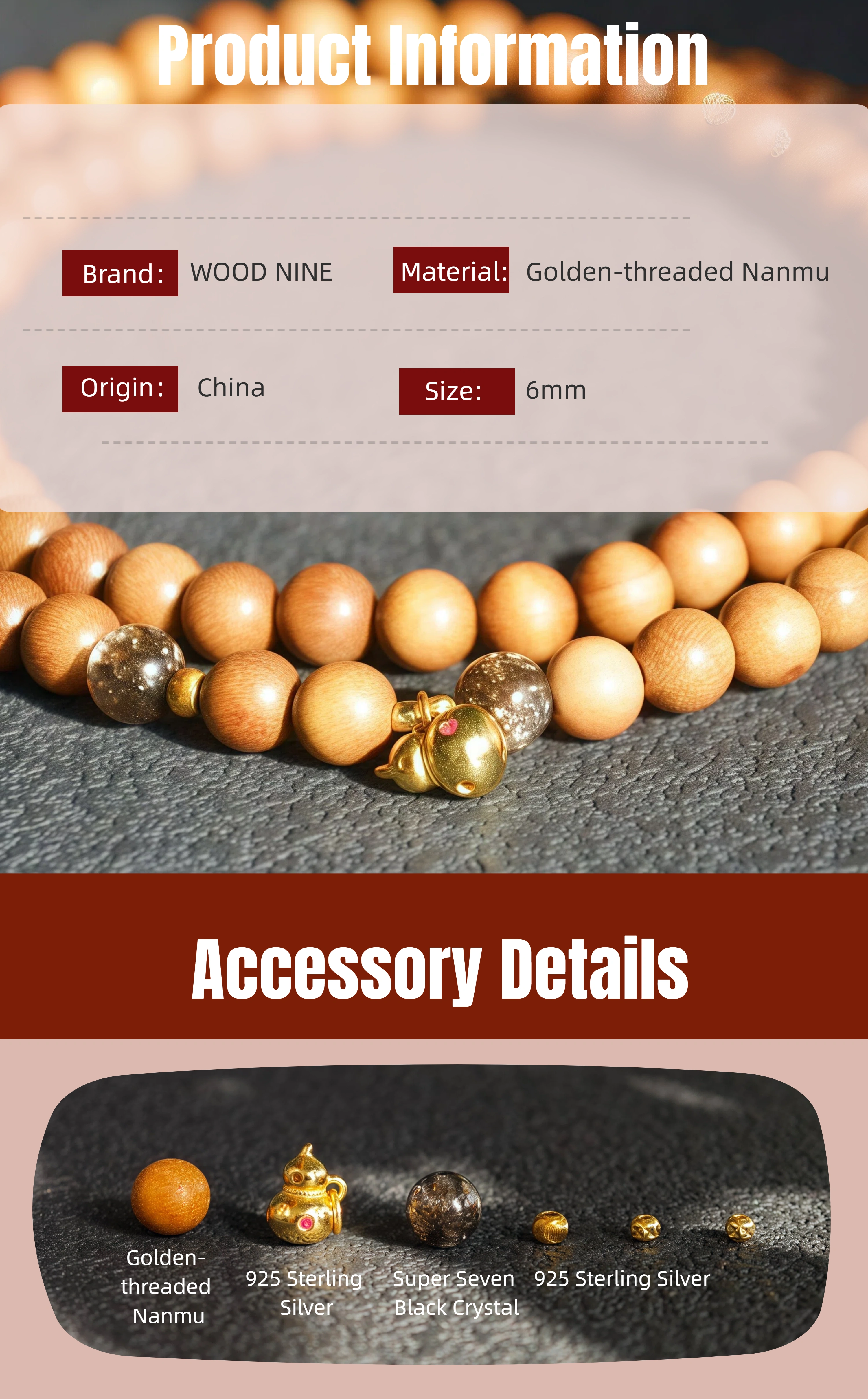 Tiny Water Healing Bracelet: 6mm Golden Phoebe Super Seven Black Crystal - Luxury Stackable Calm