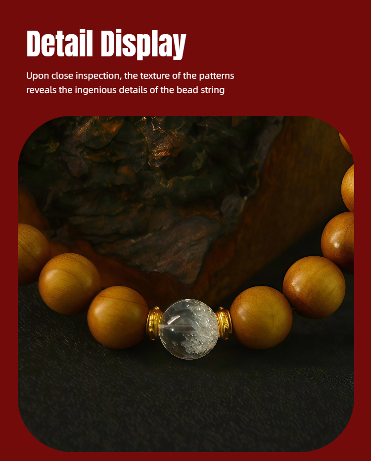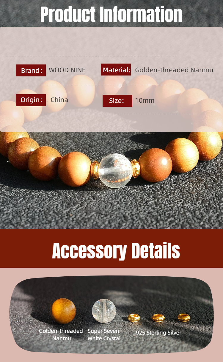 Feng Shui Men's Luxury Bracelet: 10mm Golden Phoebe Super Seven White Crystal - Fortune