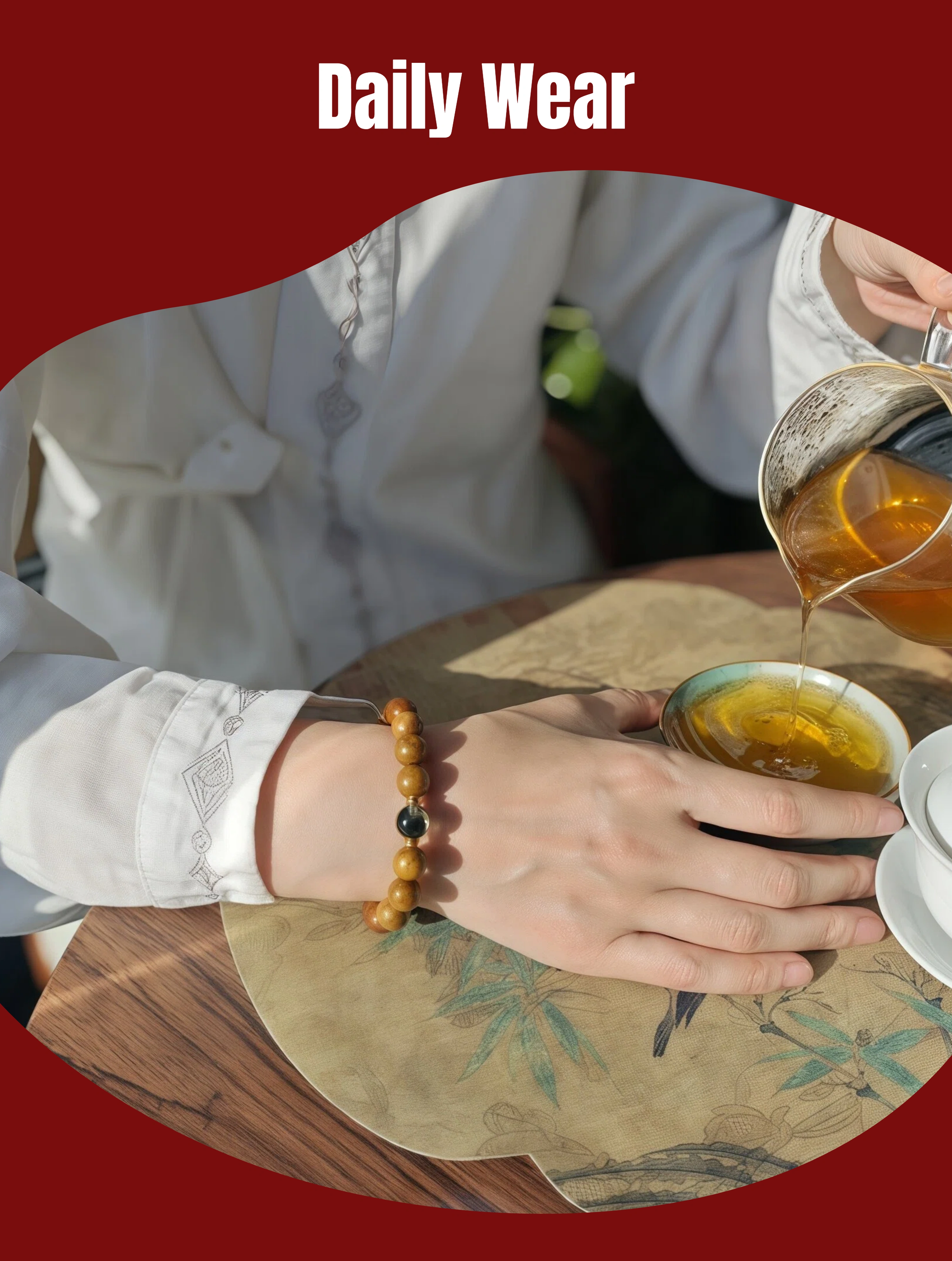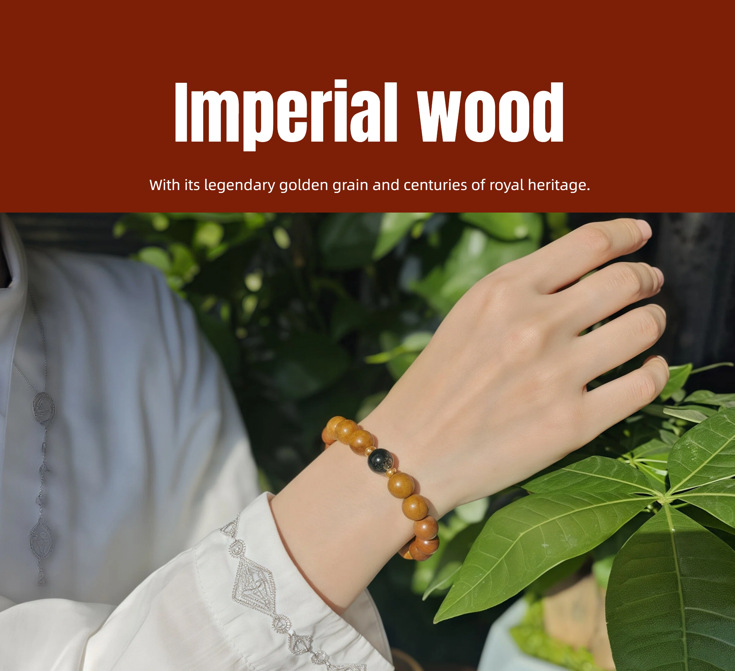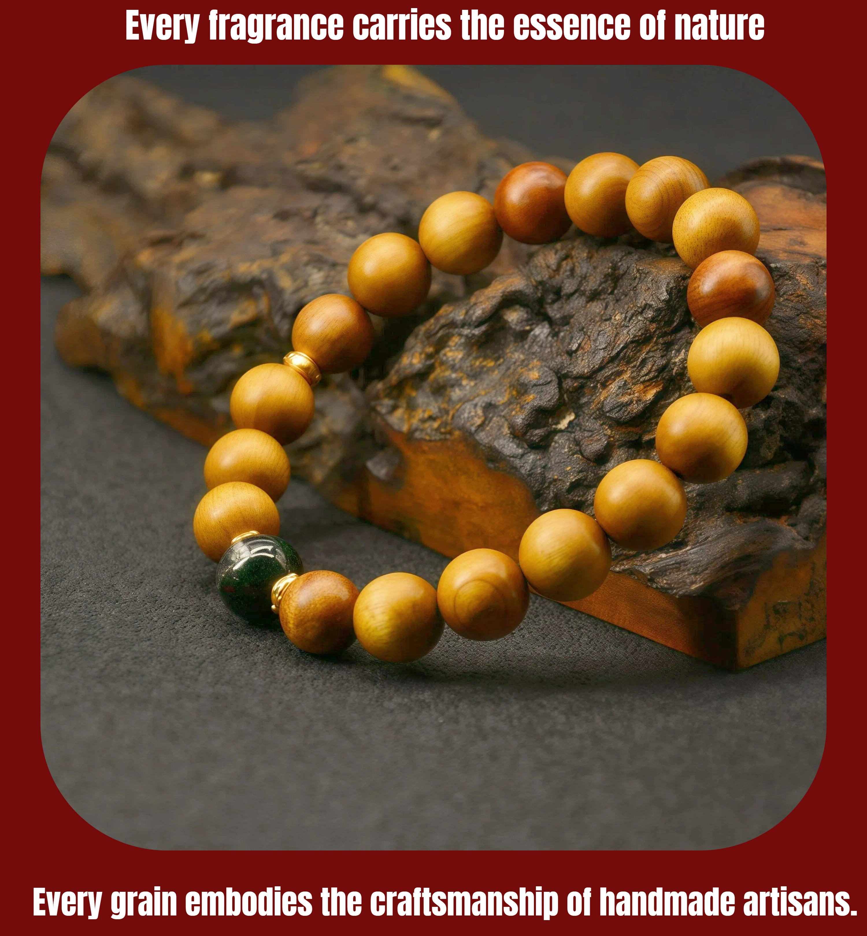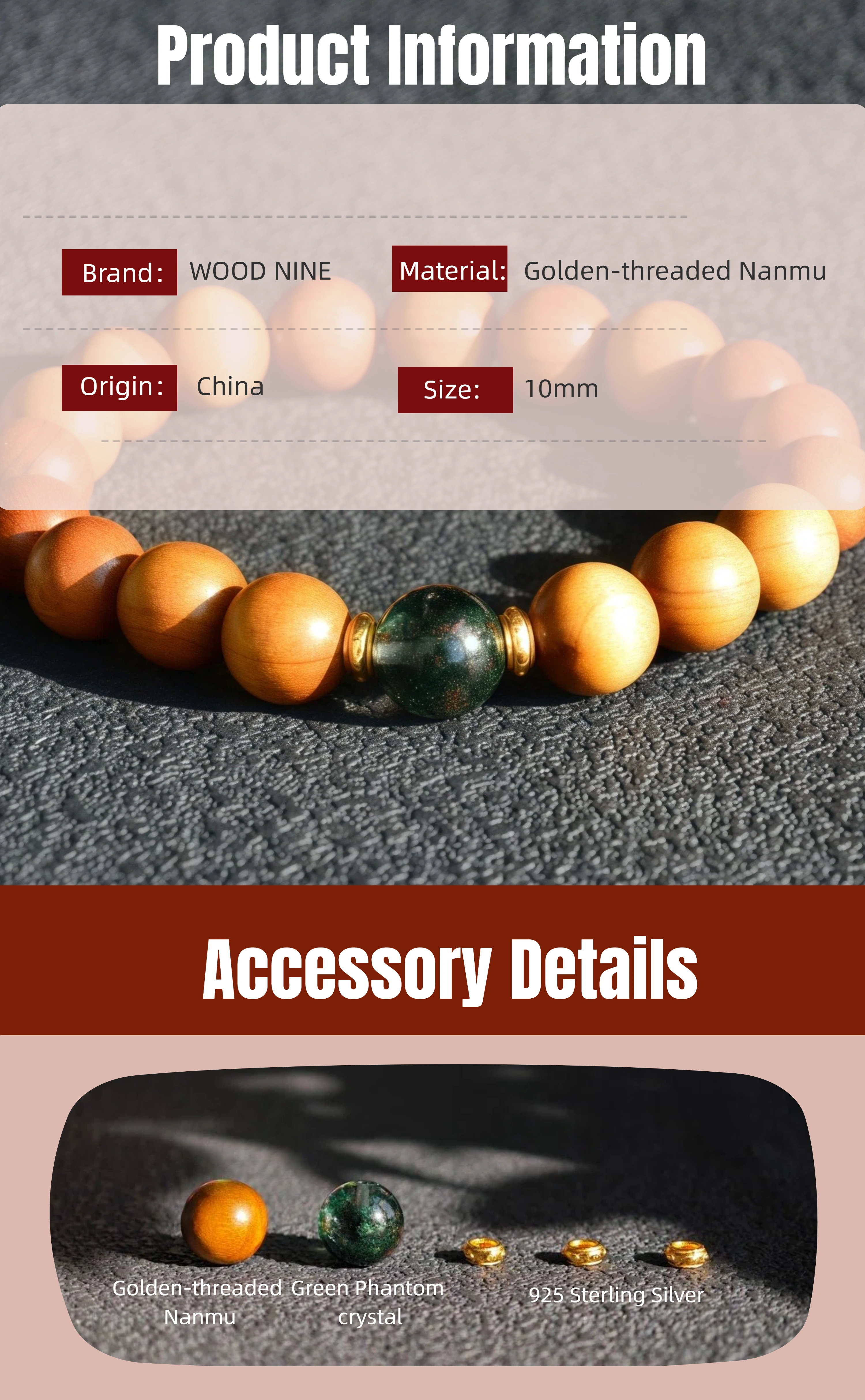 Wood Healing Energy Bracelet: 10mm Golden Phoebe Green Phantom Crystal - All Day Vitality