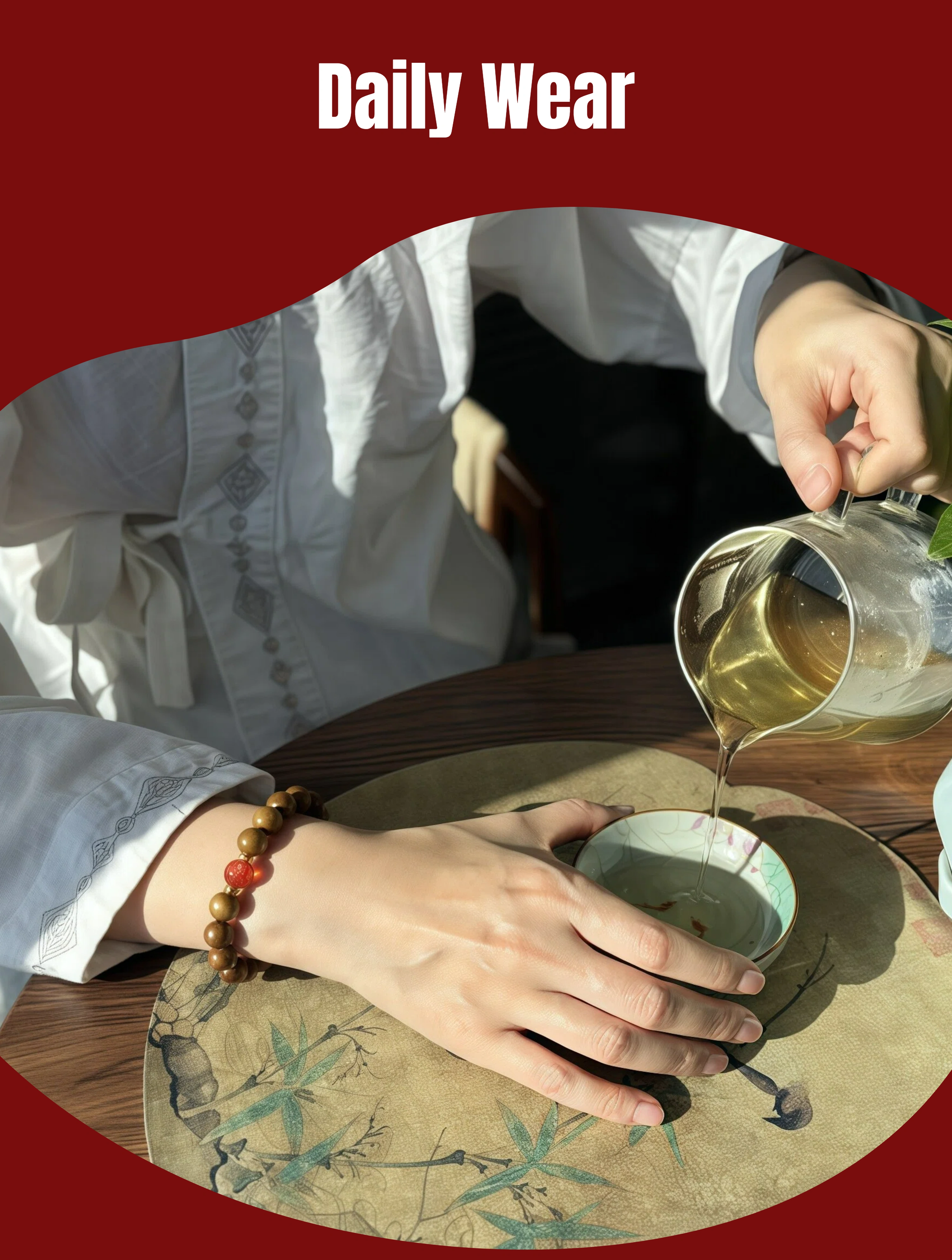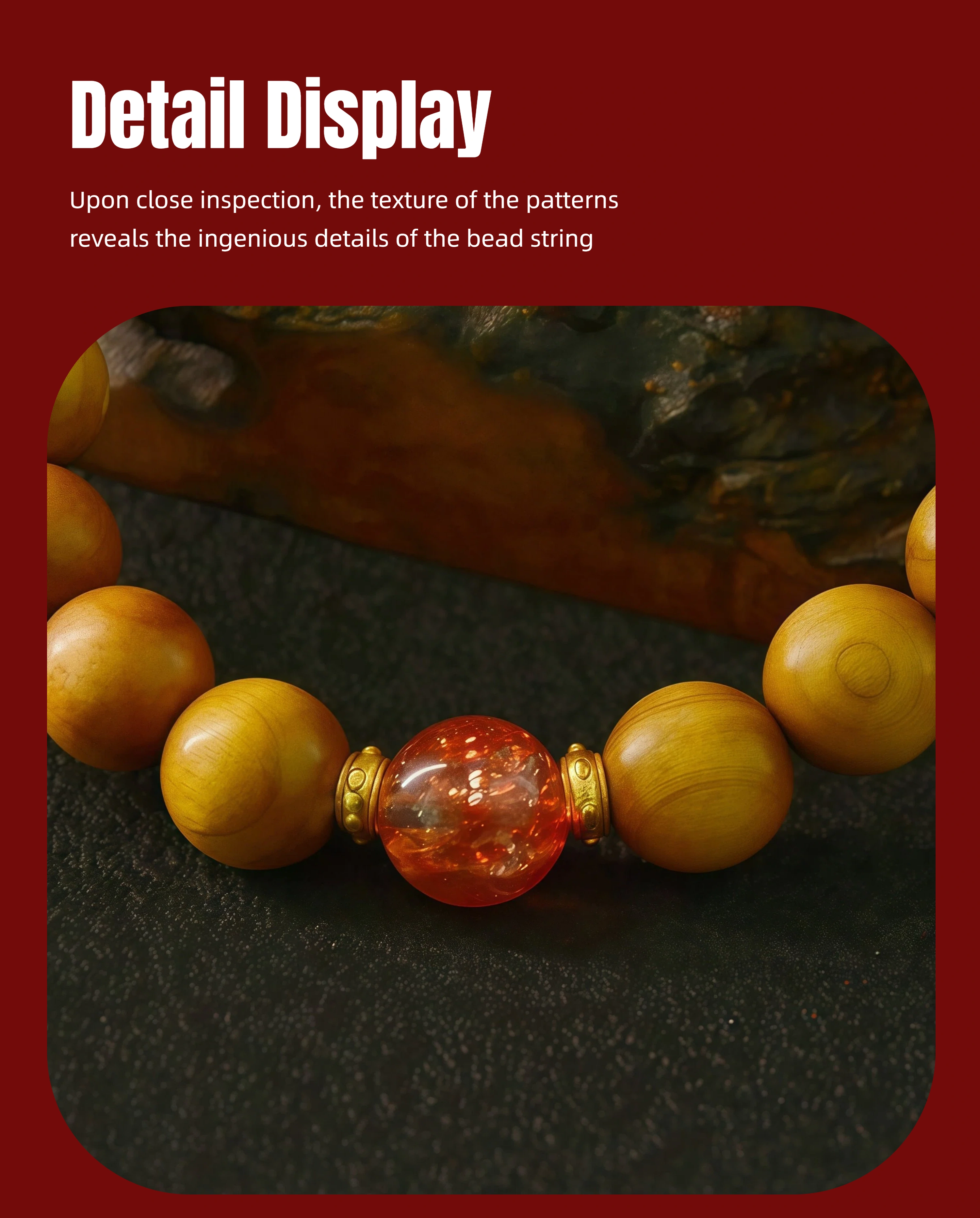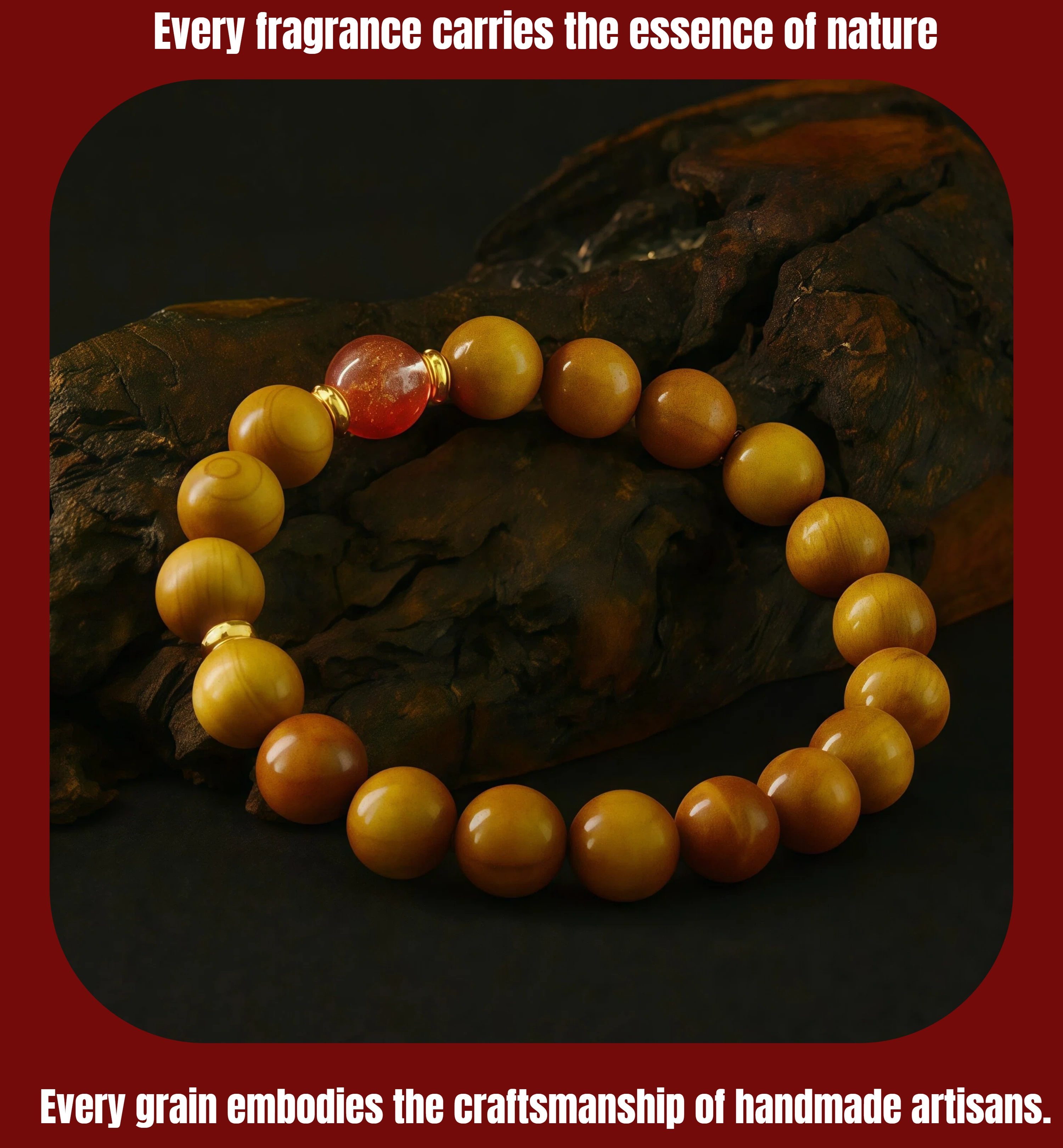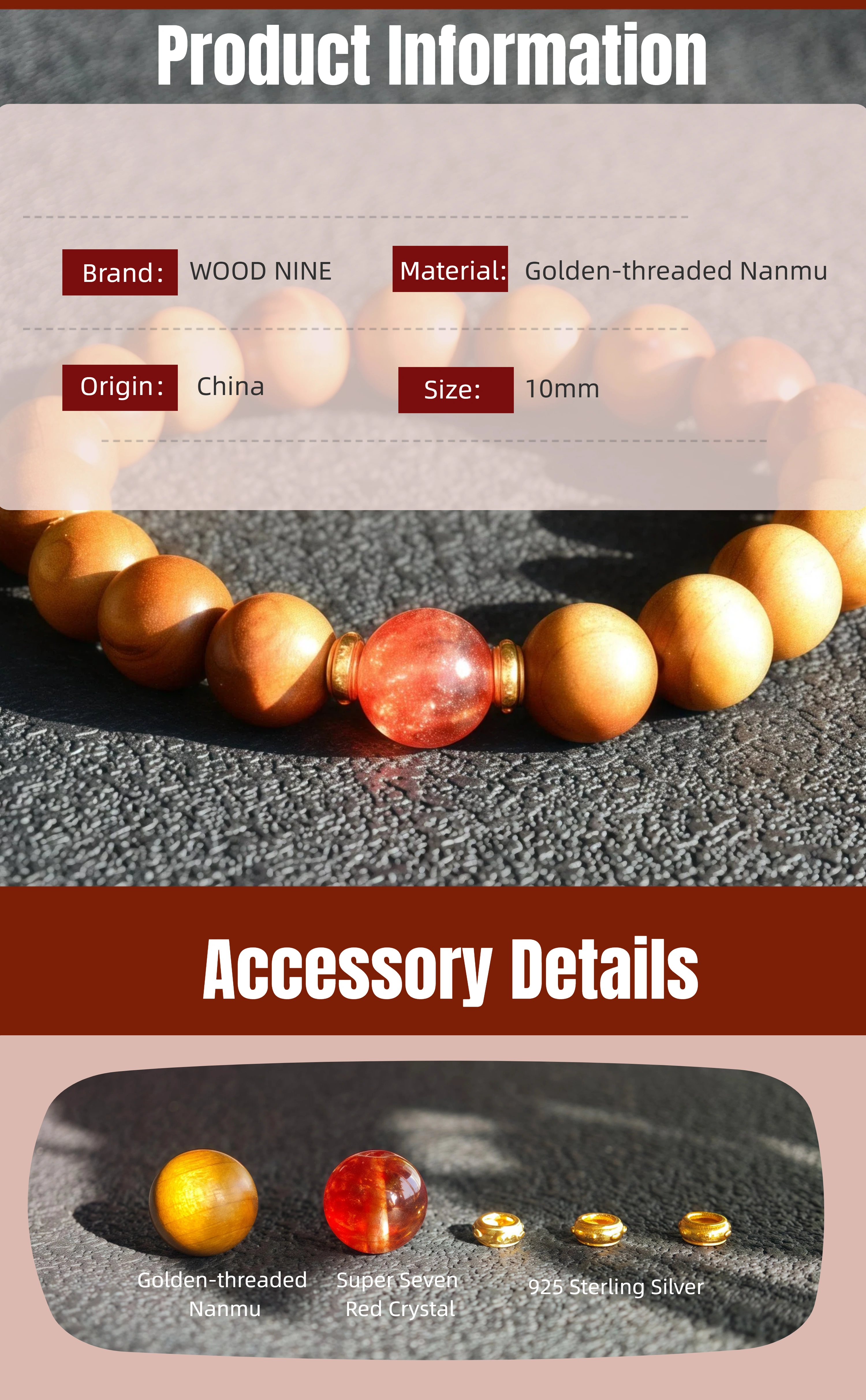 Fire Energy Men's Bracelet: 10mm Golden Phoebe Super Seven Red Crystal - Workplace Power