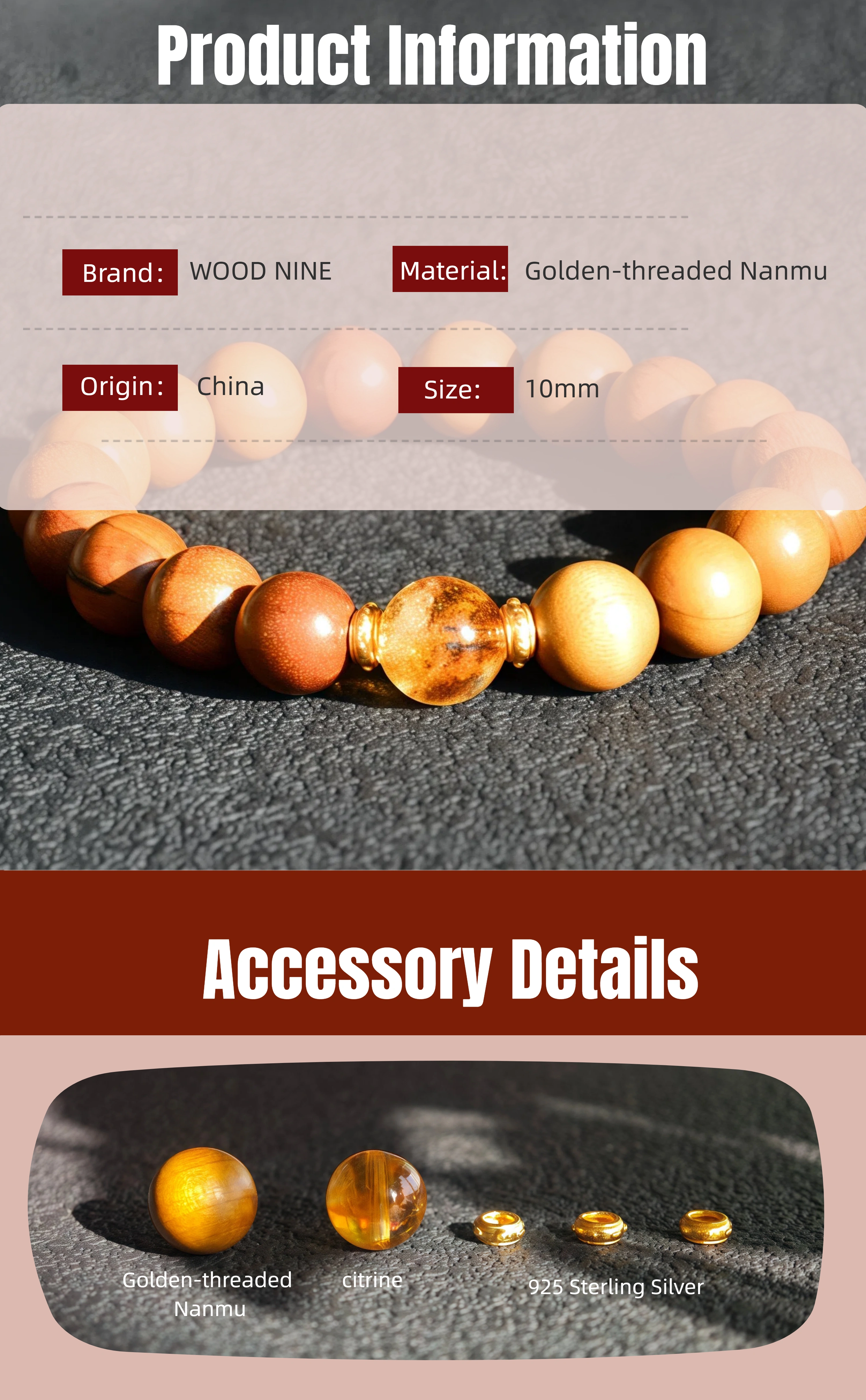 Earth Protection Feng Shui Bracelet: 10mm Golden Phoebe Golden Phoebe Citrine - Luxury Stability